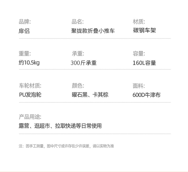 | 顔色 | 曜黑【平折款】四寸露營推車 |