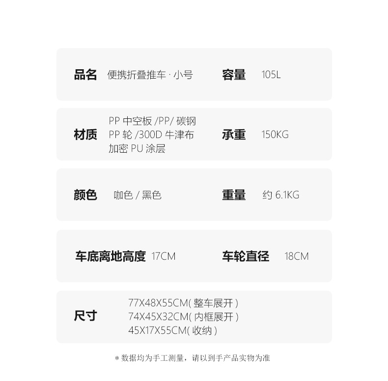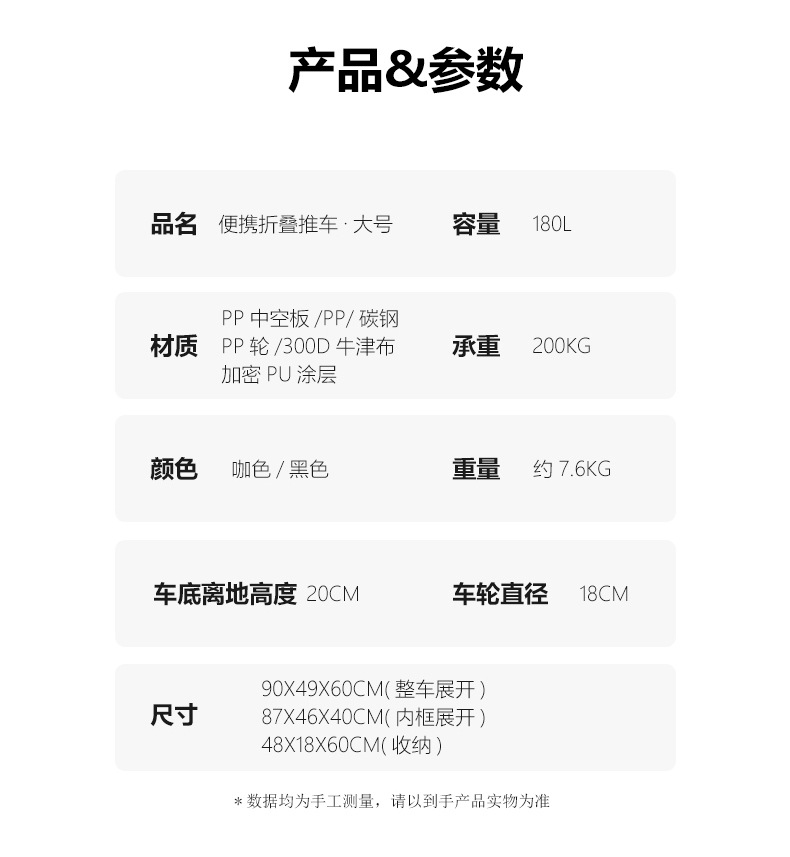 | 尺寸 | 整車:90*49*60CM 內框:87*46*40CM 折曡板:87*46CM 容量:約180L |