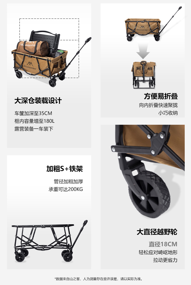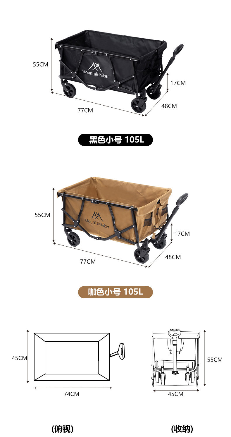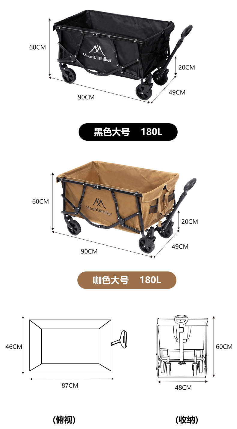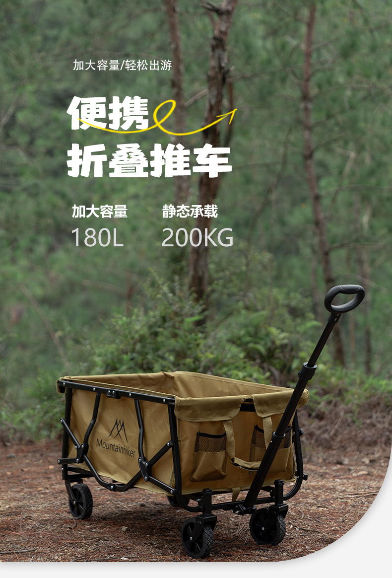 山之客可攜式折疊推車雙層營地推車戶外露營手提拉車拖車野餐擺攤車