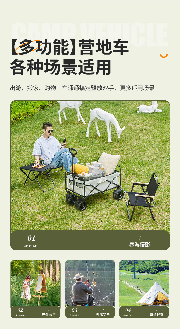 洋公子戶外露營車手推營地車折疊野營拖車家用野營小推車