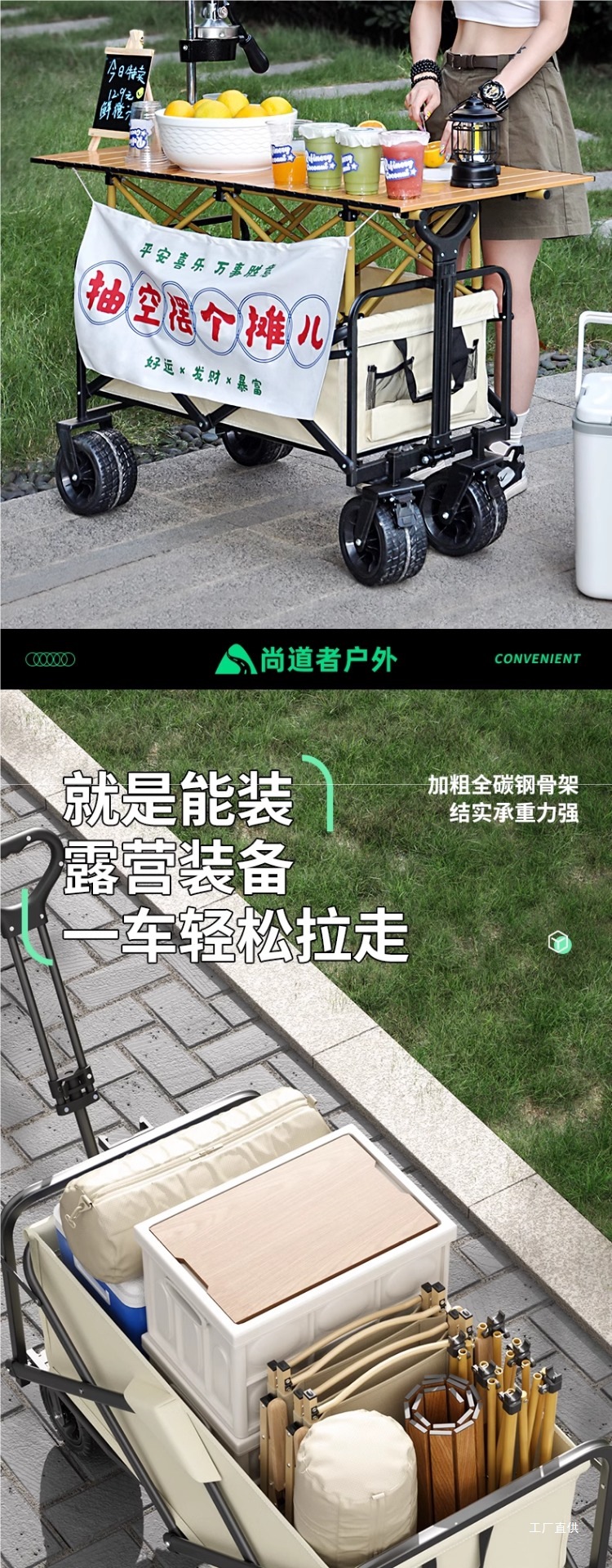 尚道者擺攤露營車地攤折疊移動兒童可躺戶外營地購物拉快展馳