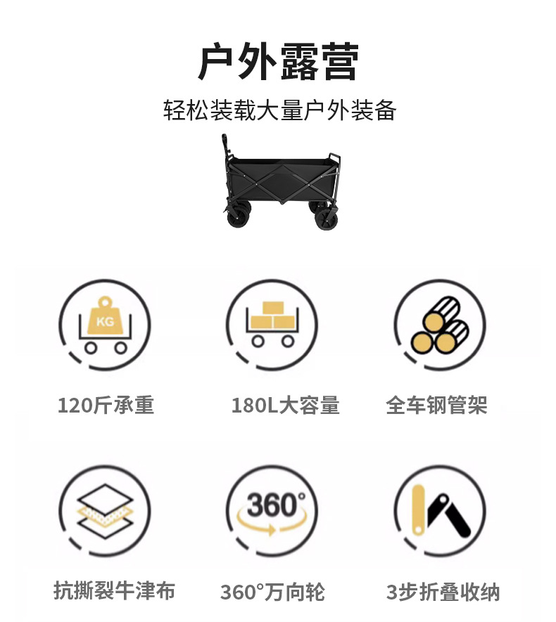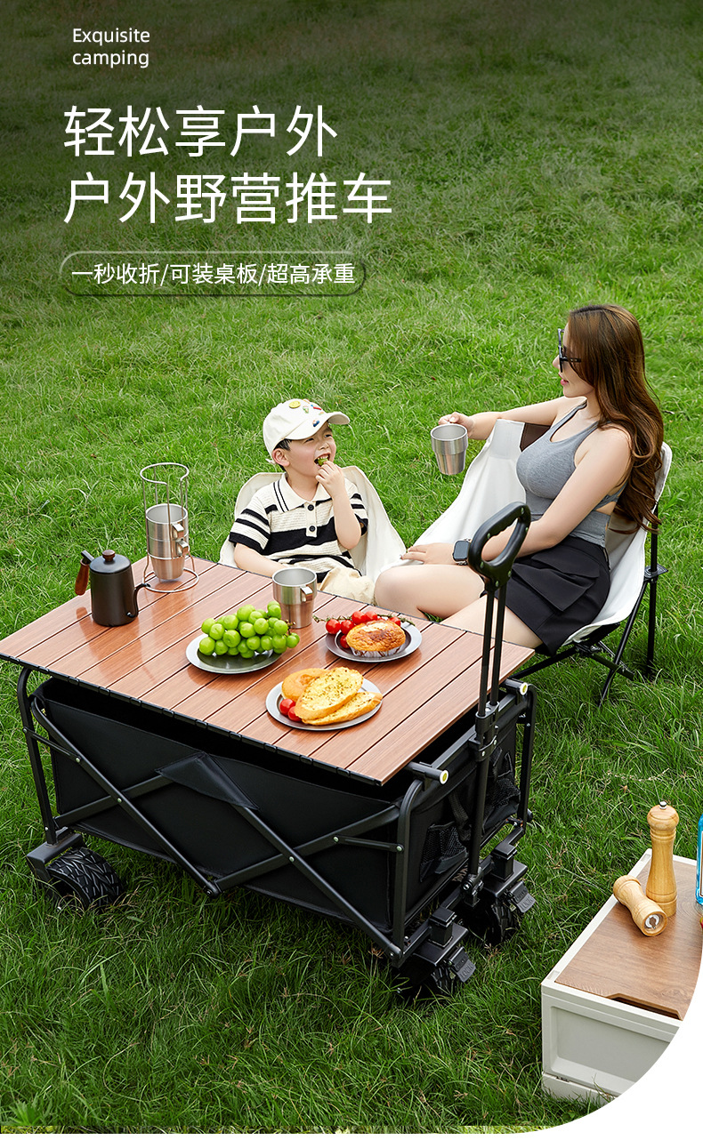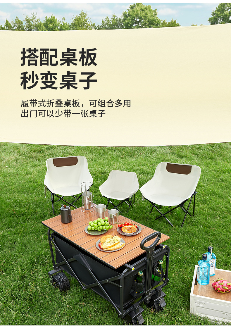新款可折疊可攜式露營推車拉桿小拉車營地車桌板野外戶外手推野餐車