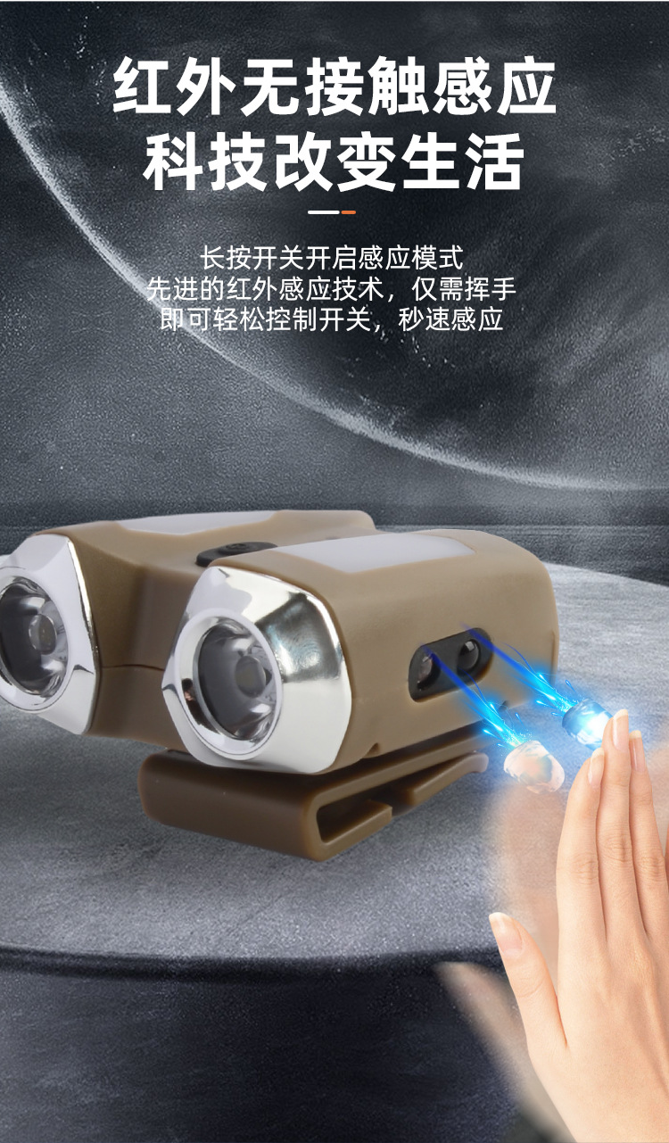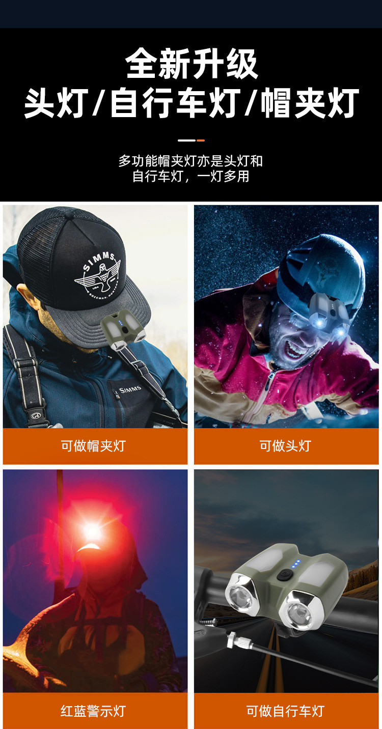 戶外頭燈多功能帽夾燈頭戴式感應夜釣頭燈可攜式防水超亮紅藍光應急