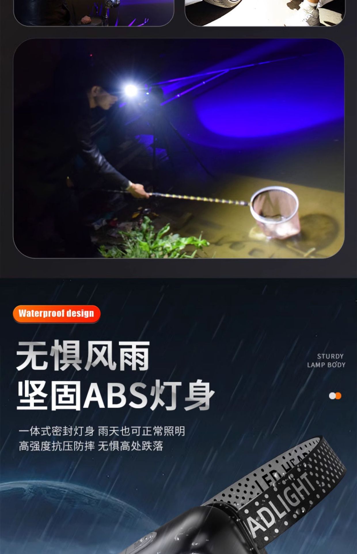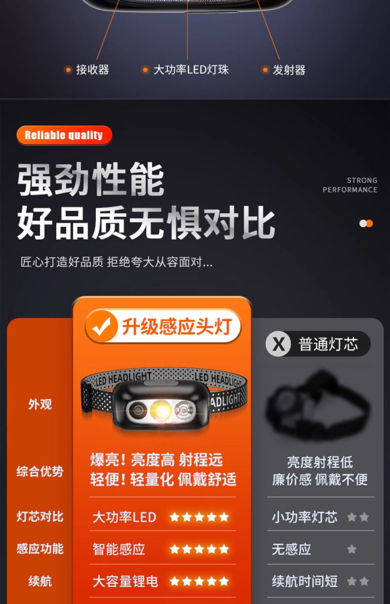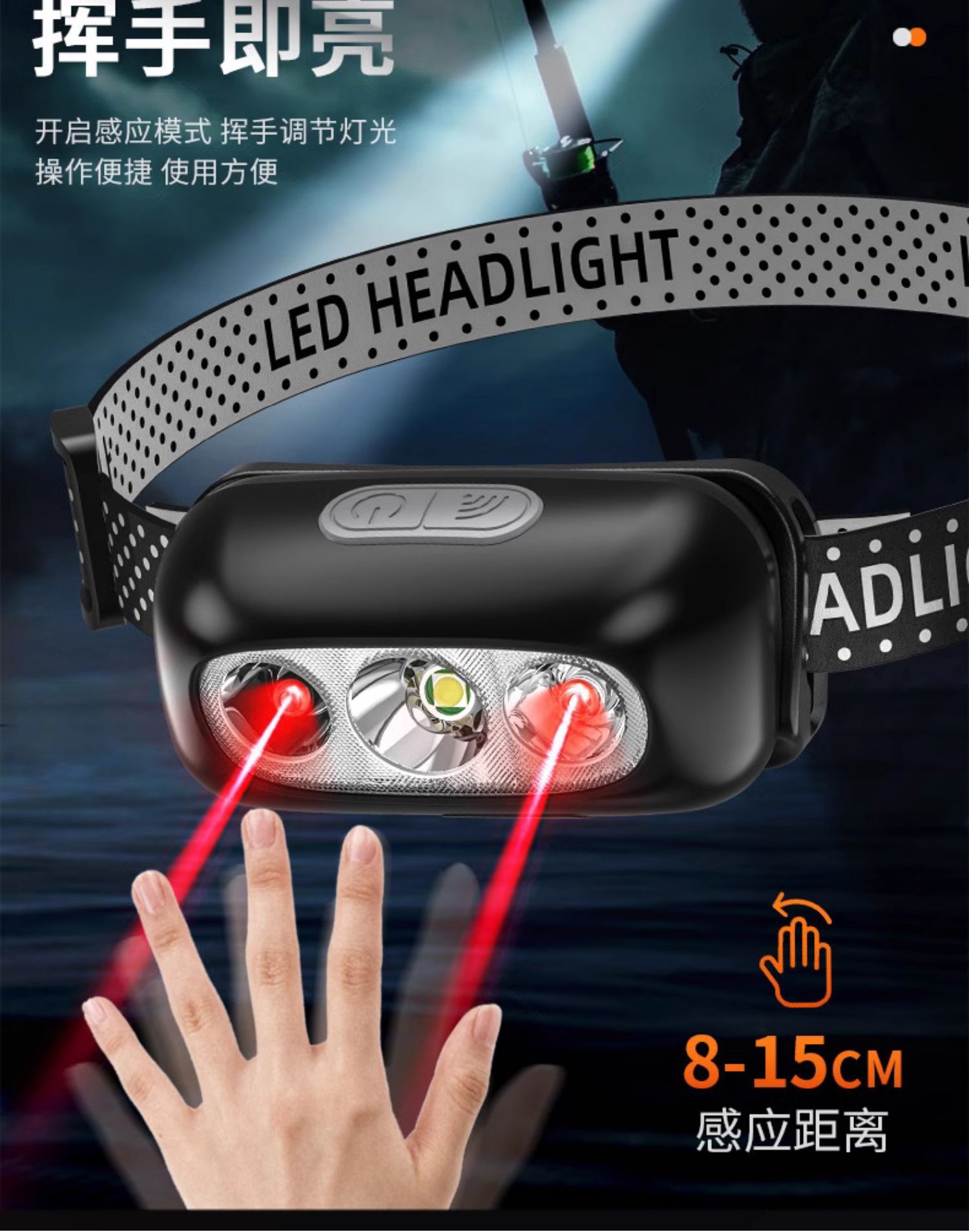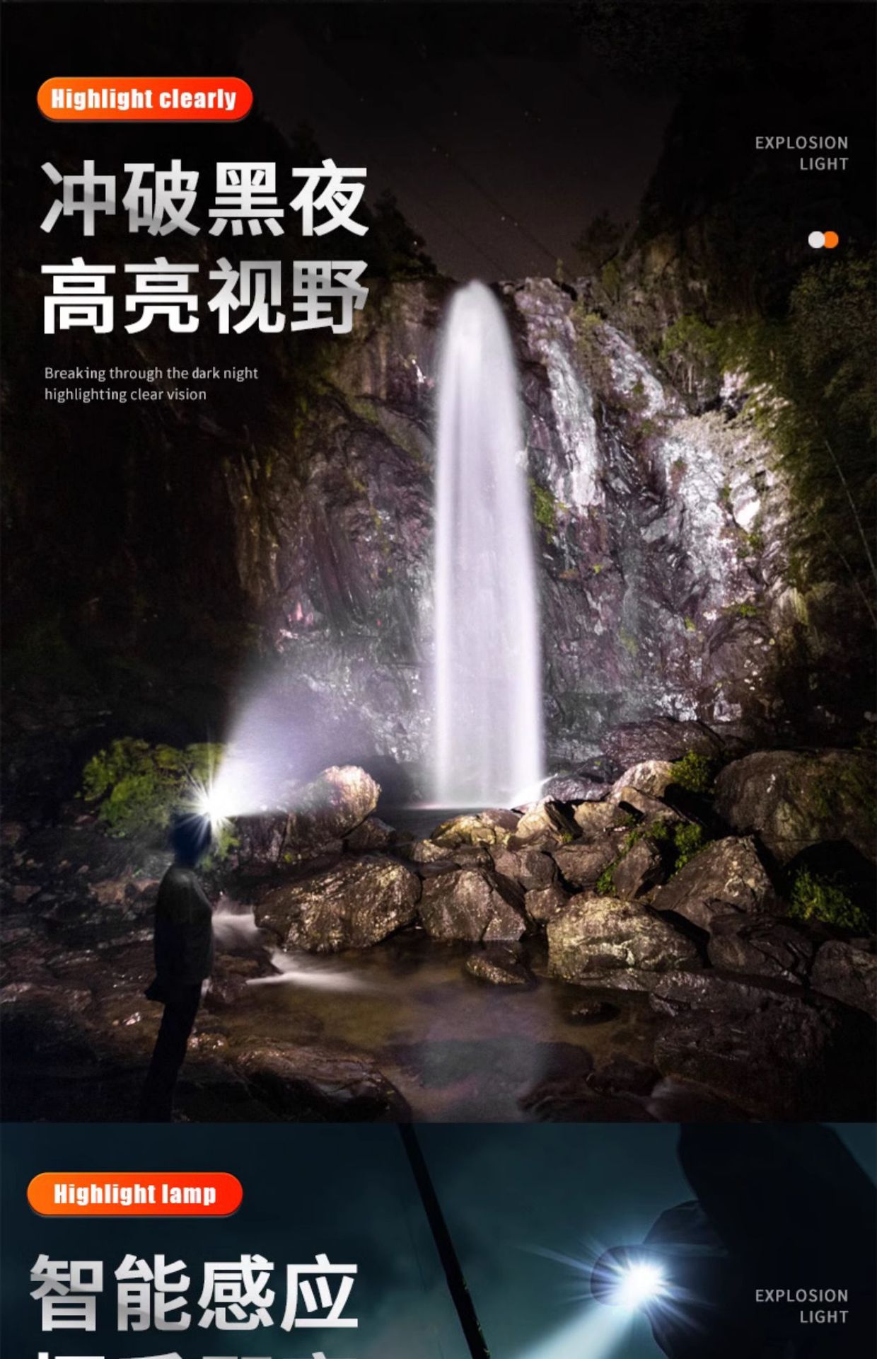 頭燈強光充電超亮頭戴式夜釣魚照明戶外超長續航超輕感應小手電筒