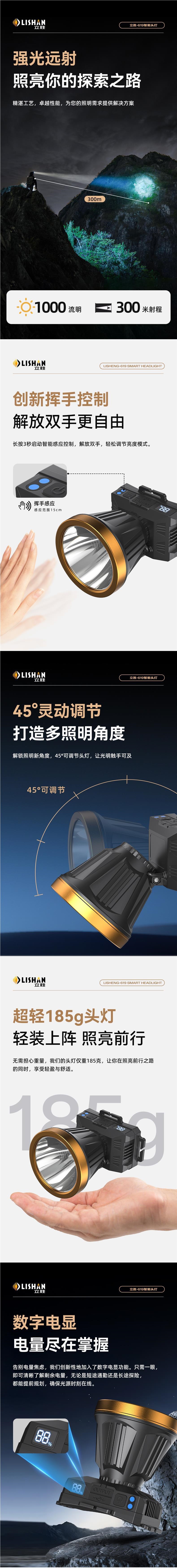 2024新款頭燈強光充電超亮頭戴式釣魚礦燈感應手電筒戶外