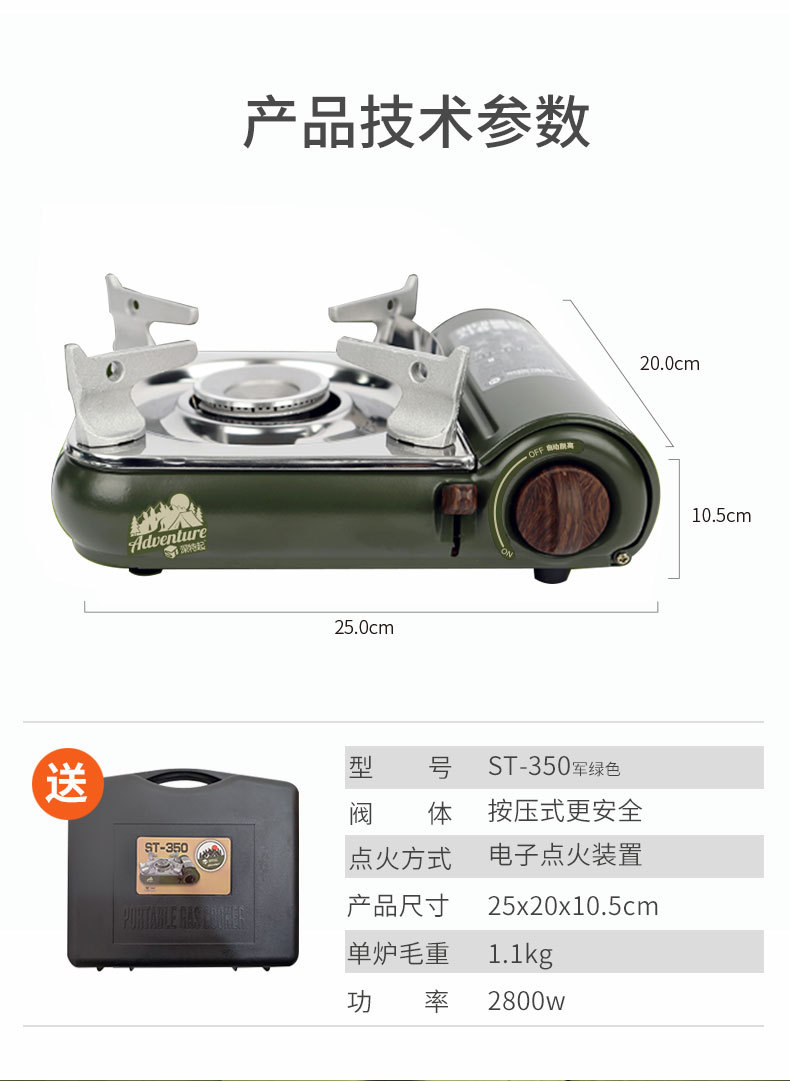 ST-350軍綠深特起迷你卡式爐家用小型火鍋戶外氣灶瓦斯爐具卡磁爐