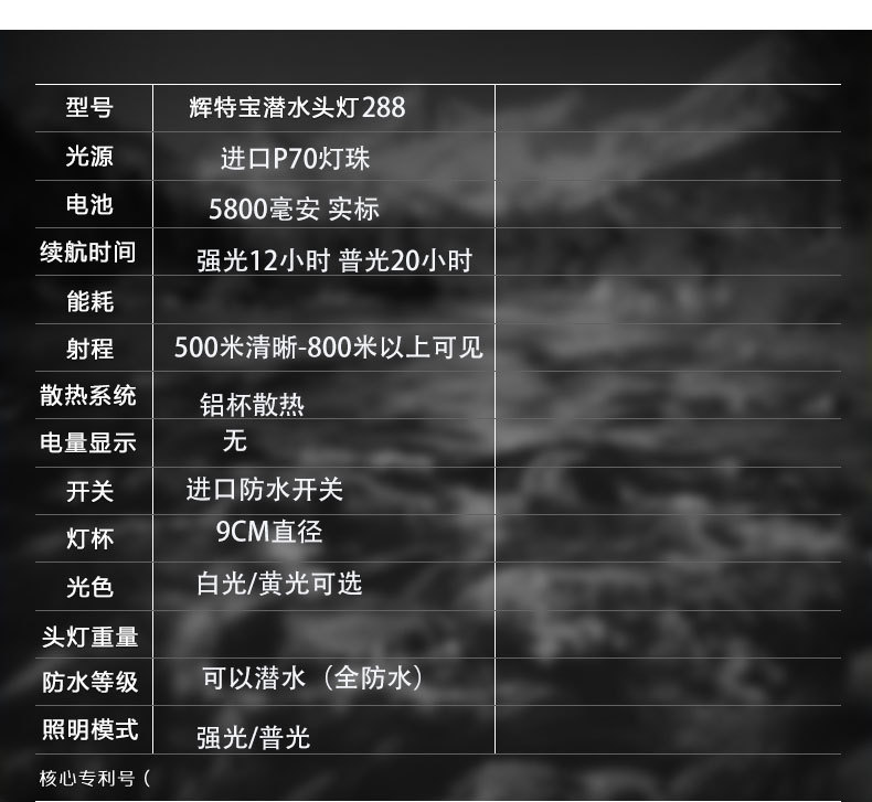| 顔色 | 潛水頭燈大光斑黃光 |