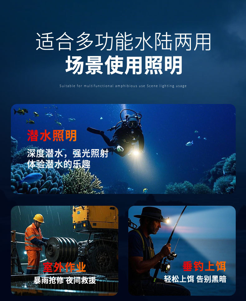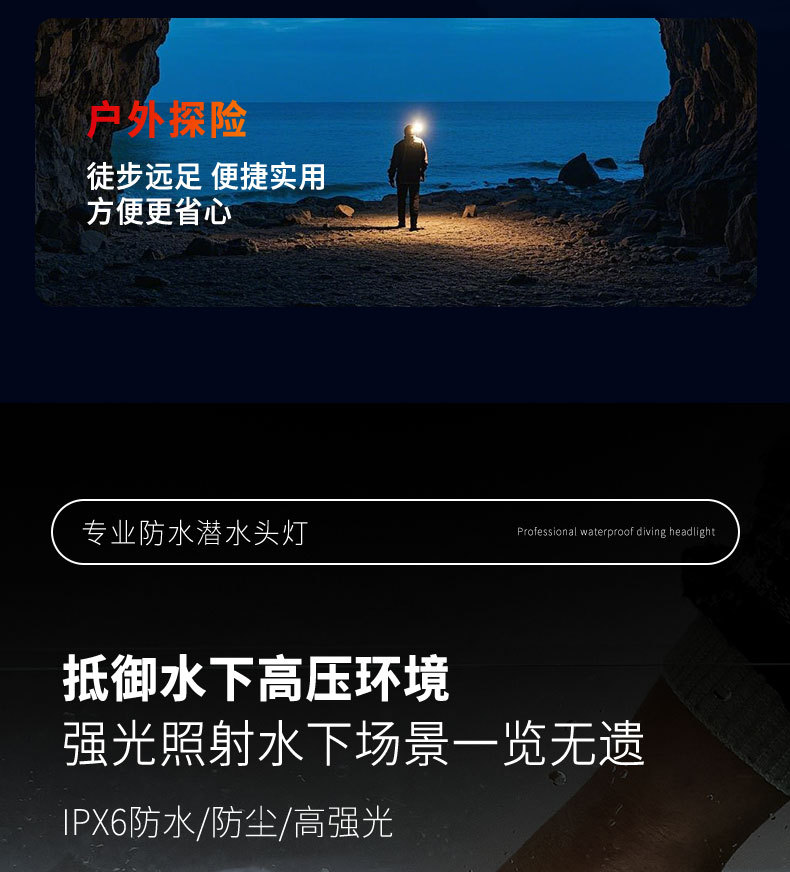 潛水專用趕海led防水頭戴式頭燈充電超亮釣魚夜釣燈強光深海可攜式