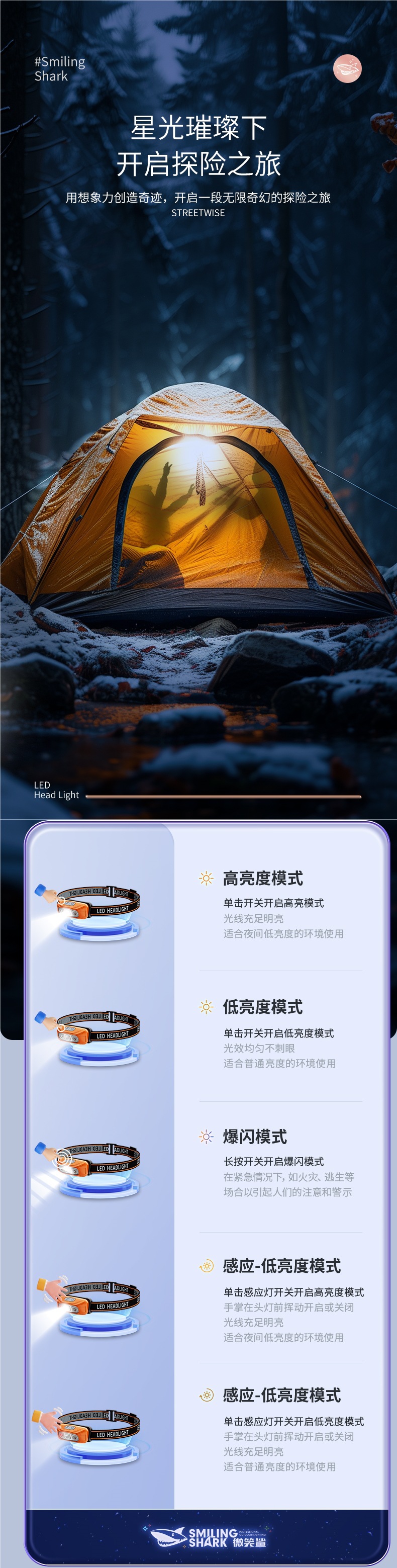 兒童頭燈夏令營戶外趕海強光充電頭戴式照明燈露營長續航