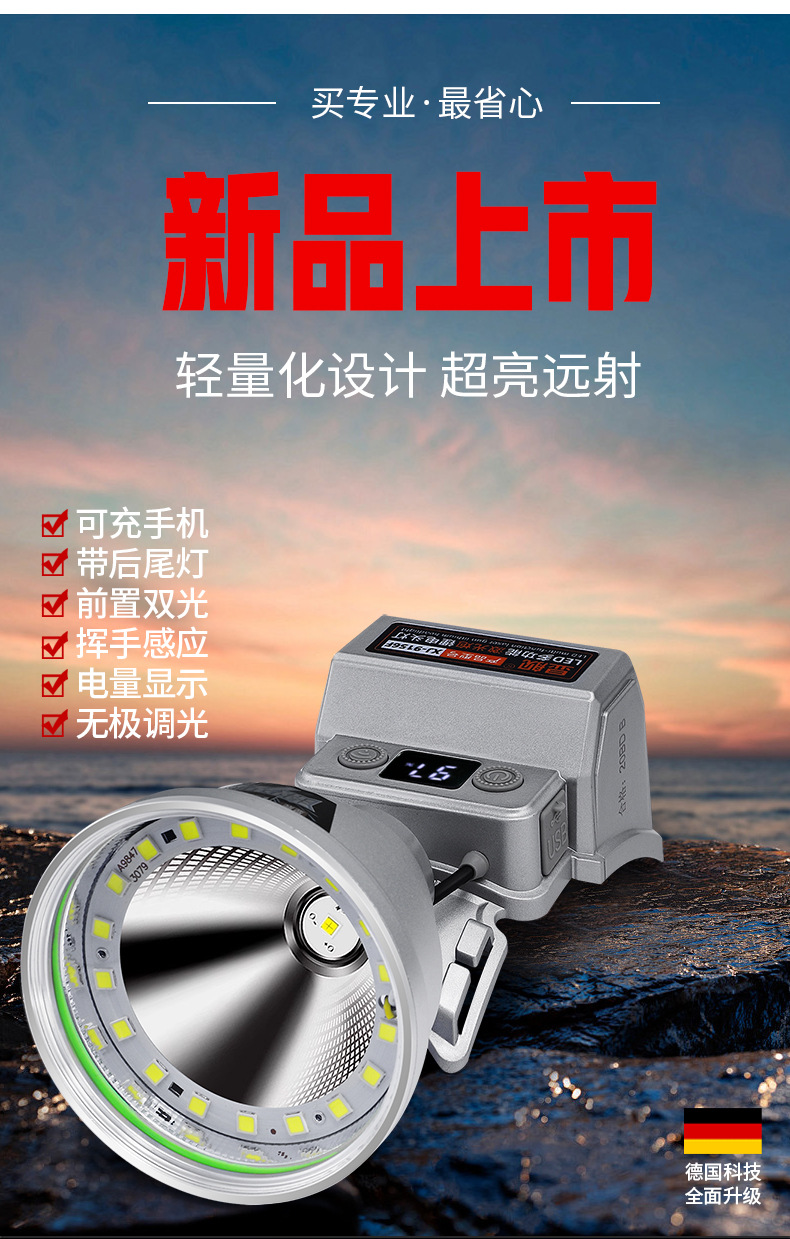 頭燈長續航強光鋰電充電超亮頭戴式感應夜釣魚燈戶外led礦燈