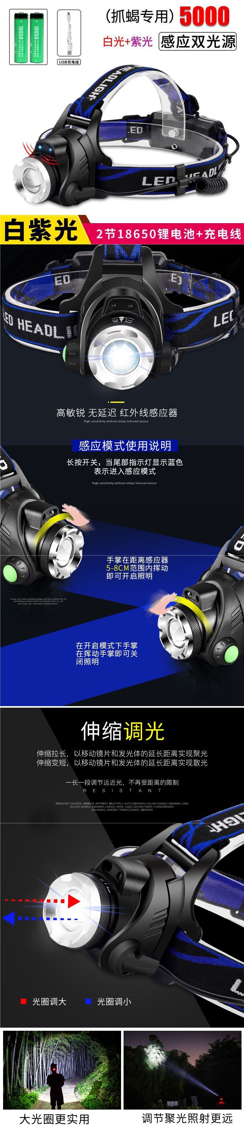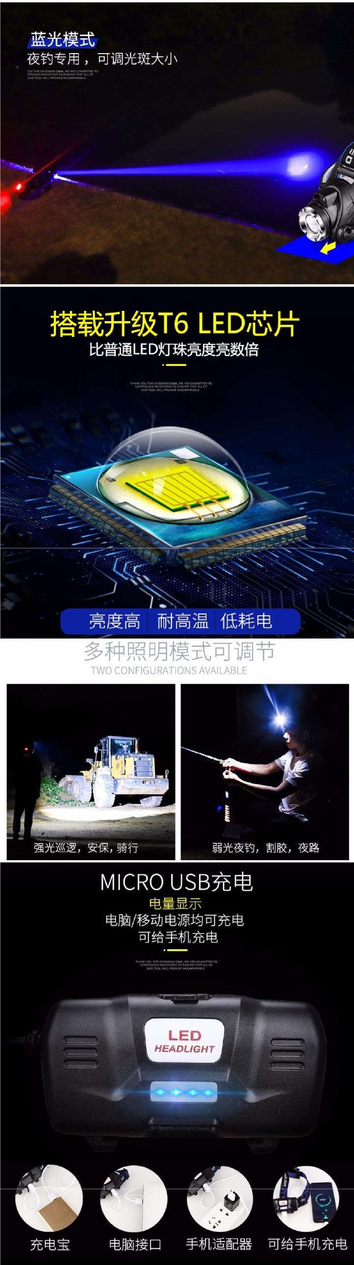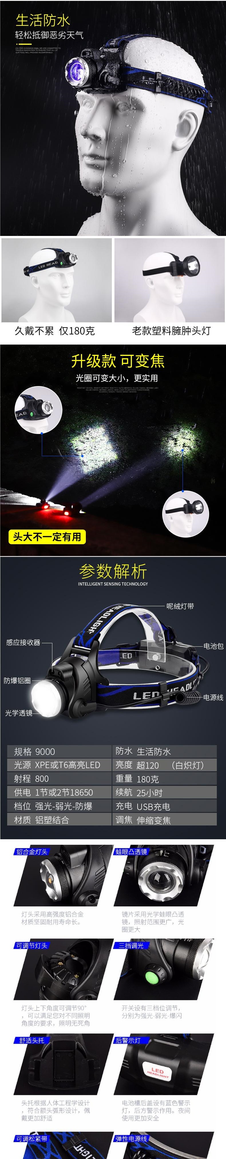 LED頭燈強光充電感應防水超亮頭戴式手電筒夜釣魚礦燈