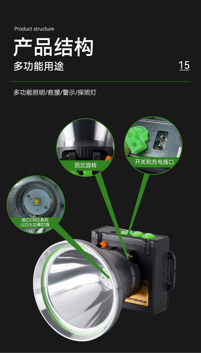 2024強光遠射強光頭燈可充電超亮頭戴式長續航鋰電礦燈抓魚抓黃鱔