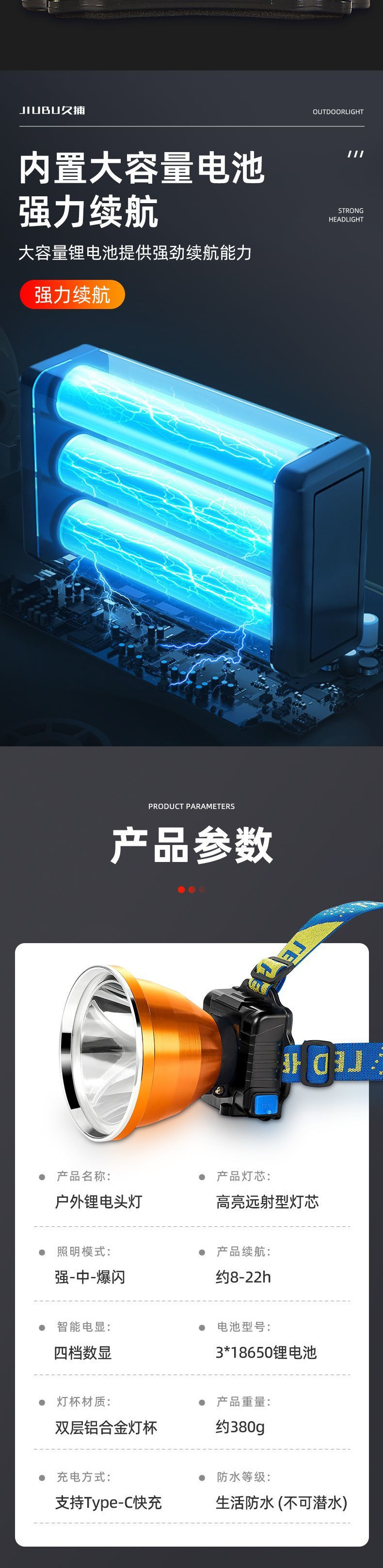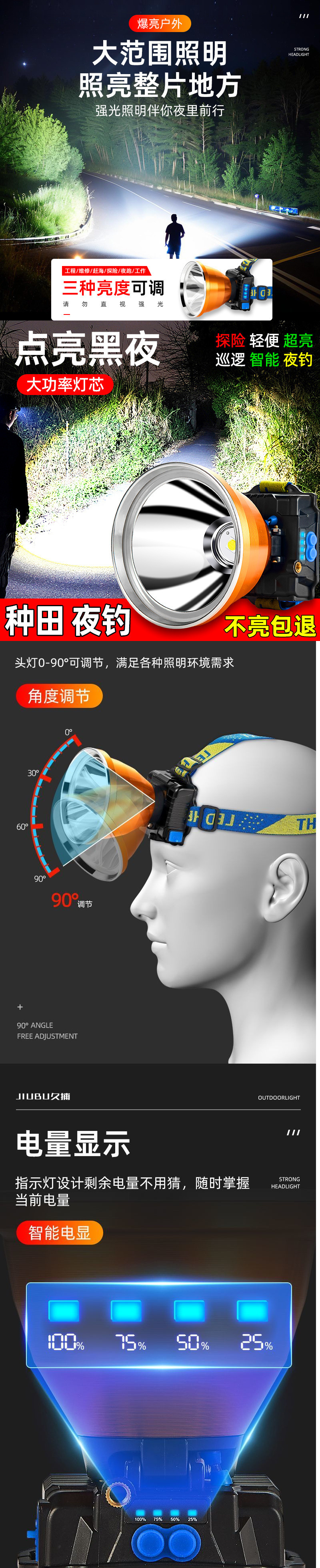 頭戴式強光頭燈可充電超亮遠射防水超長續航釣魚LED礦燈戶外頭燈
