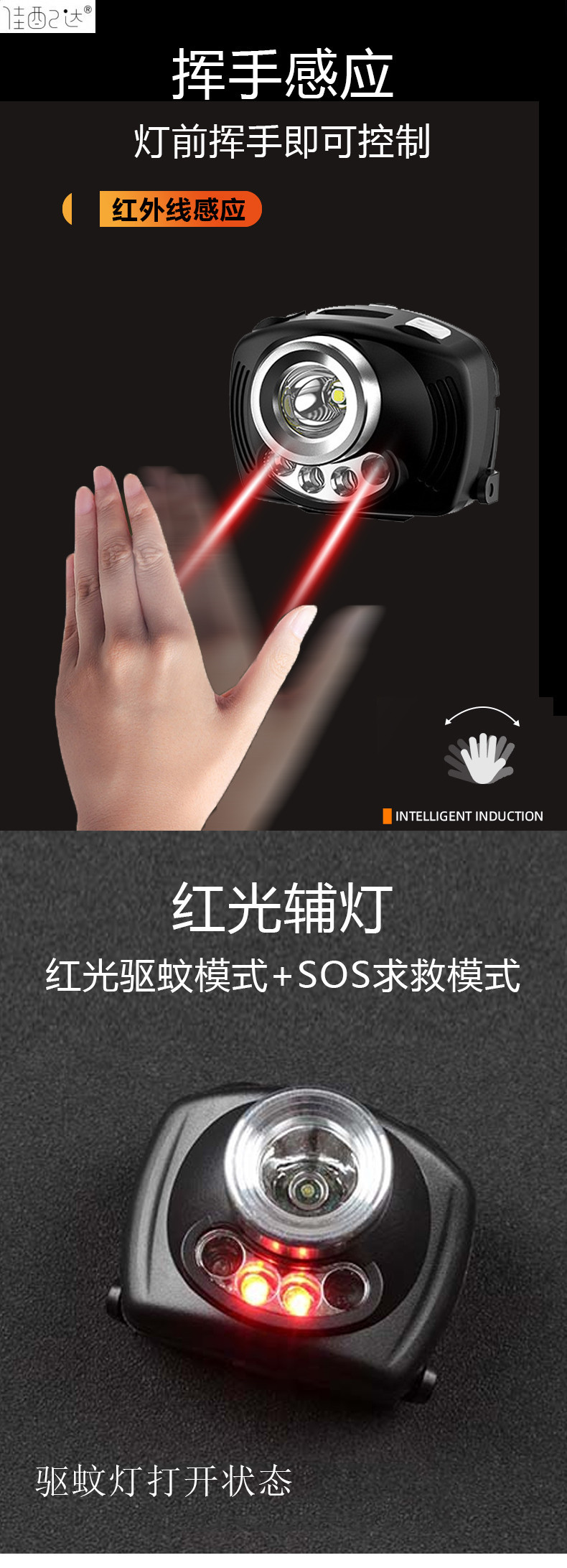 頭燈強光充電超亮頭戴式釣魚雙光感應白光led夜釣燈紅光超長續航