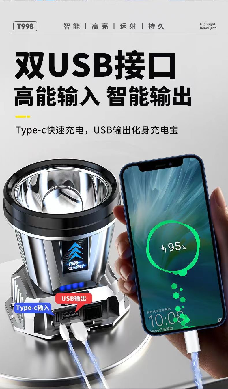 頭燈強光遠射可充電防水頭戴式超長續航超亮夜釣燈礦燈手電筒