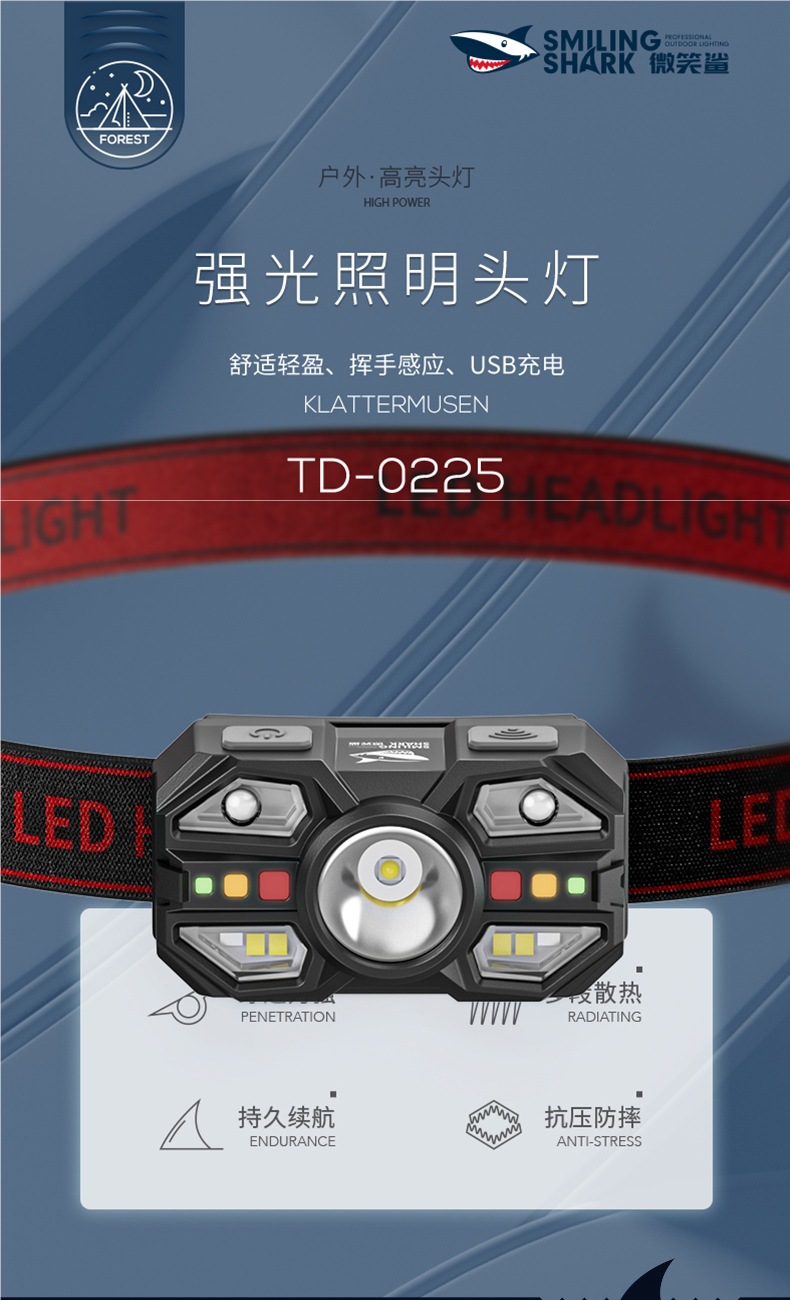 感應頭燈2025新款強光超亮夜間戶外登山照明燈頭戴式釣魚燈