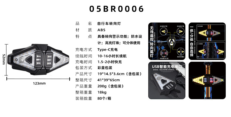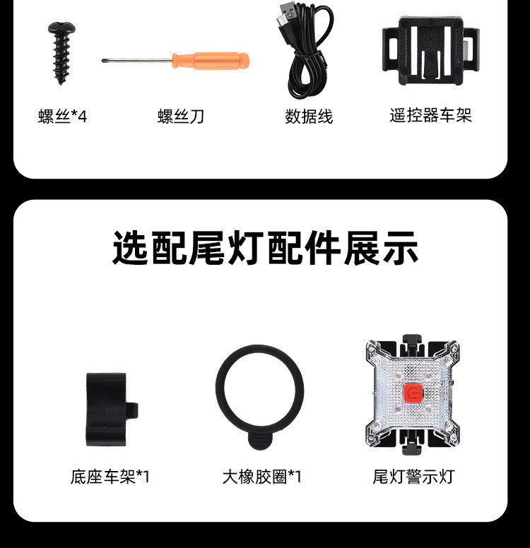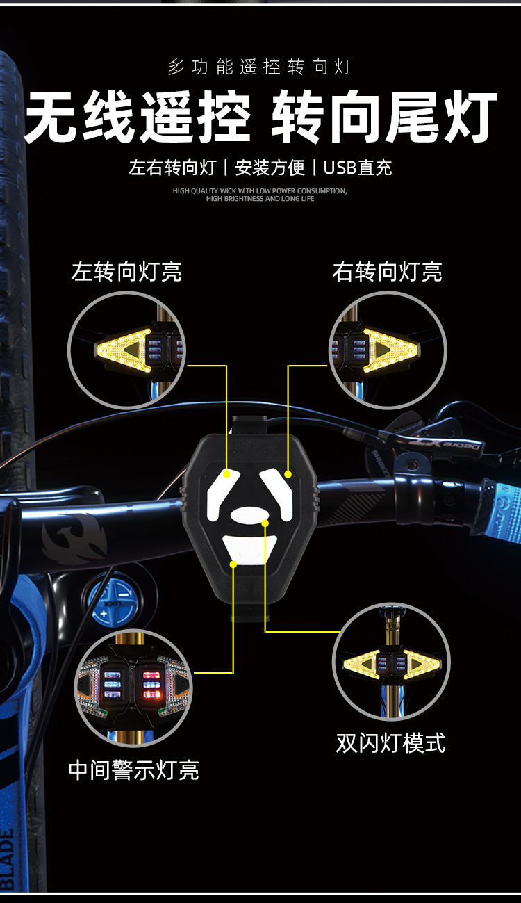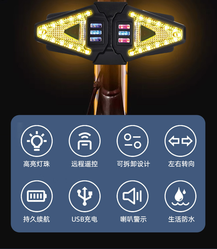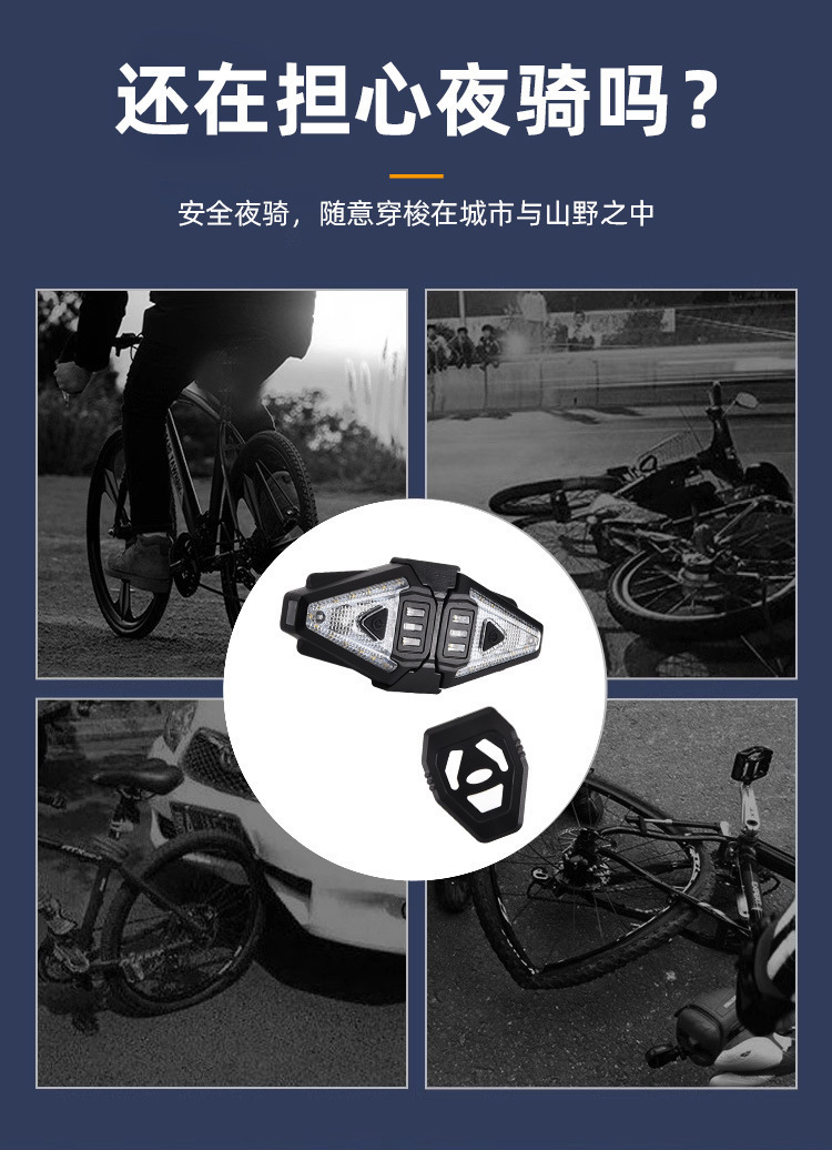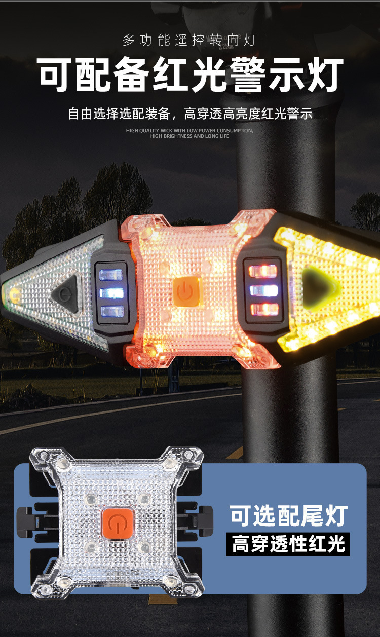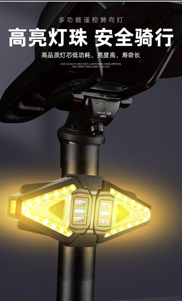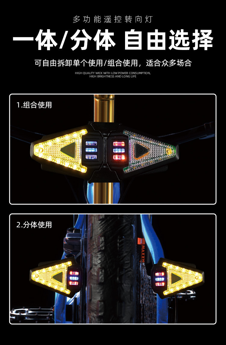 新款可分體自行車尾燈無線遙控轉向燈山地車滑板車戶外騎行警示燈