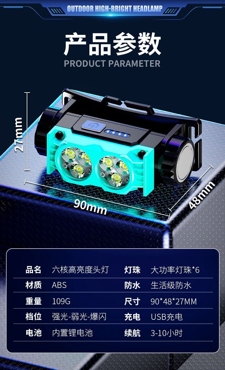 新款頭燈強光亮充電續航頭戴式夜釣長照明燈釣魚戶外