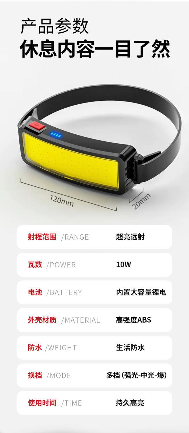超亮頭燈強光充電COB泛光散光頭戴大面積工作戶外led頭帶強光頭燈
