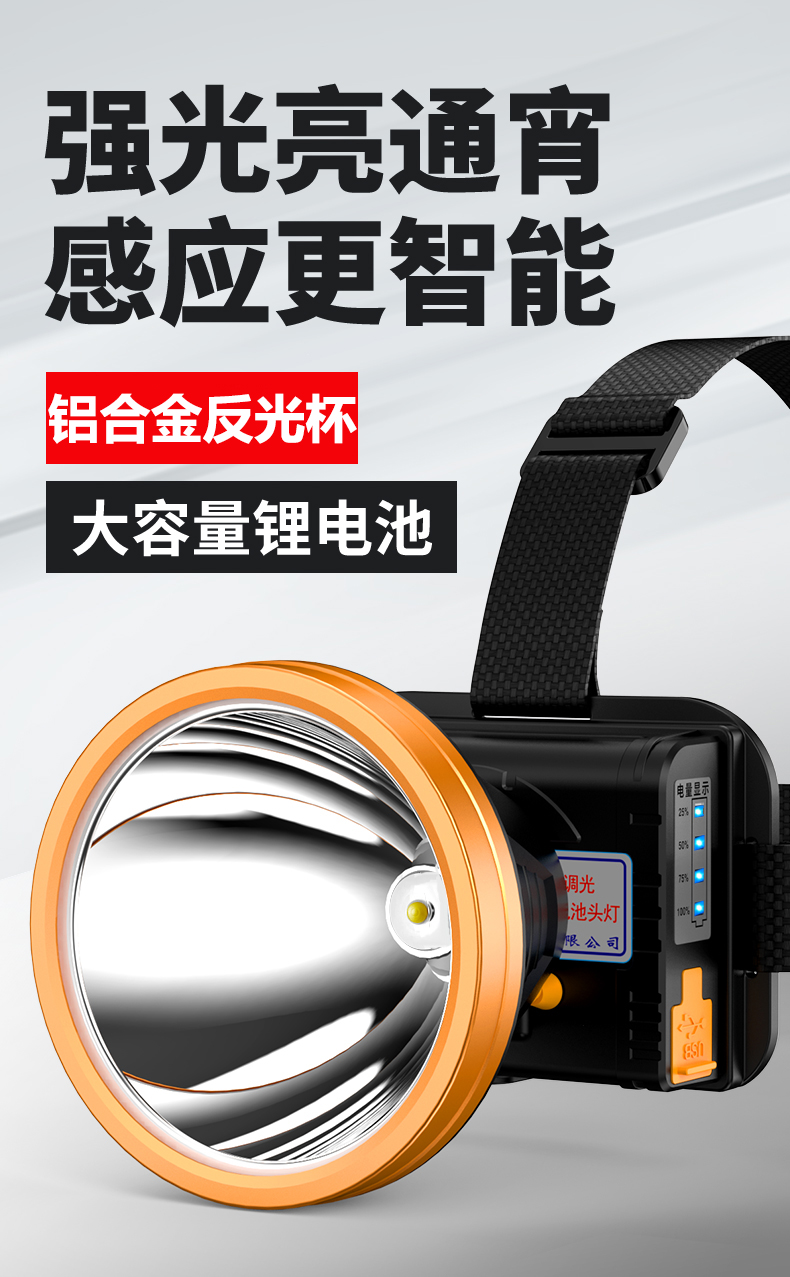 強光感應頭燈充電超亮頭戴式照明燈超長續航鋰電遠射釣魚電筒戶外
