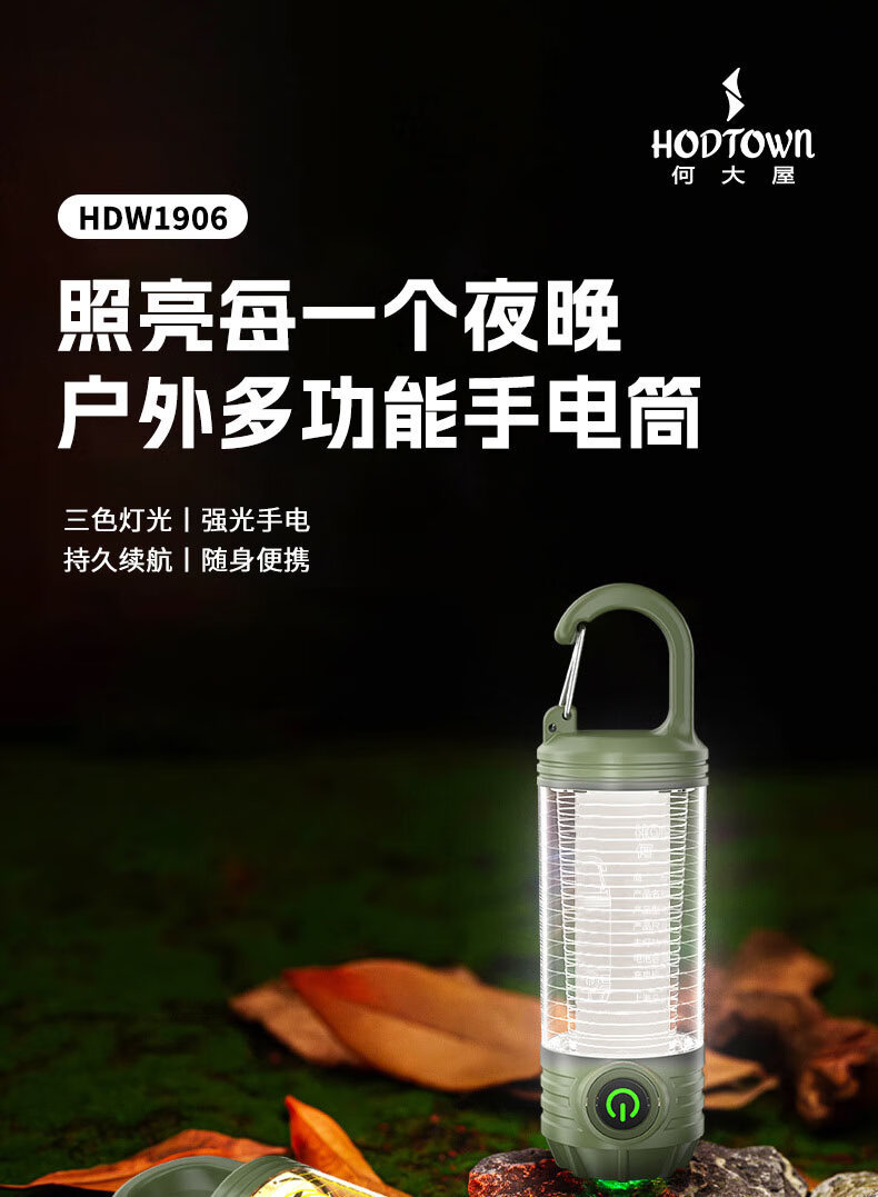 何大屋(Hodtown)手電筒強光超亮戶外露營照明燈遠射多功能應急