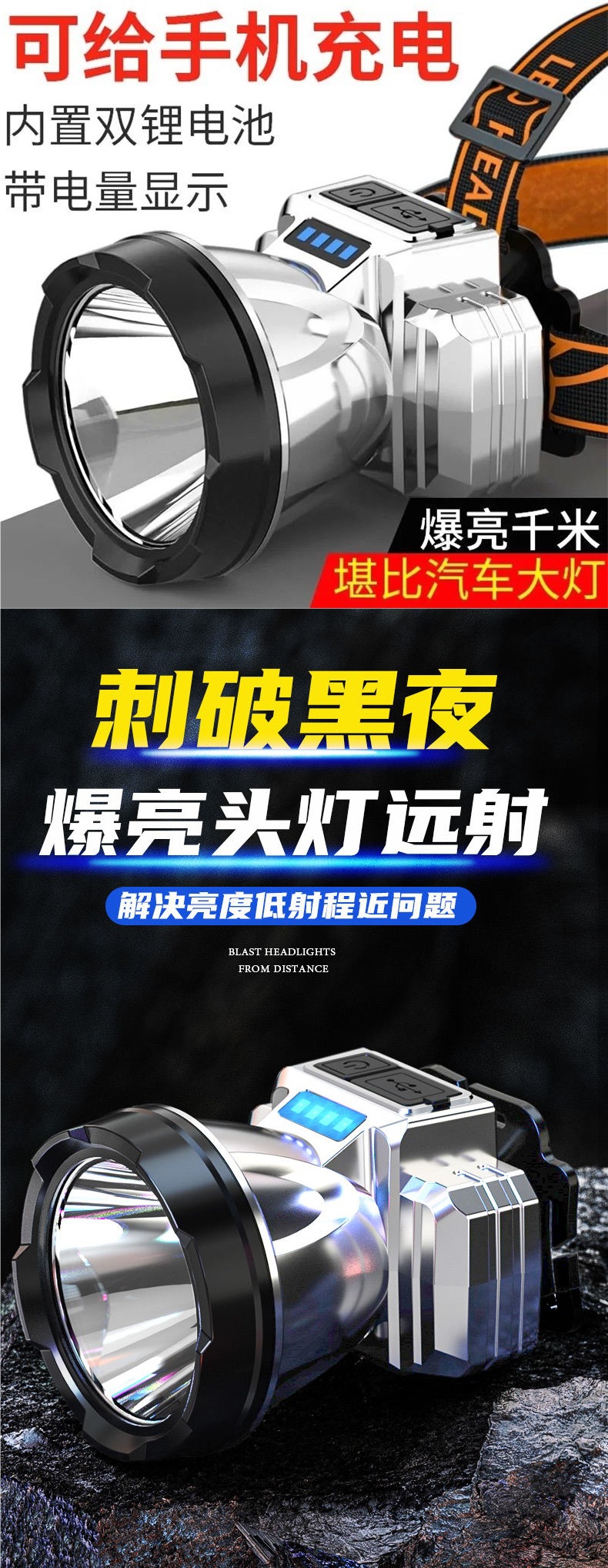 頭燈強光遠射可充電防水超亮頭戴式超長續航夜釣燈礦燈戶外手電筒