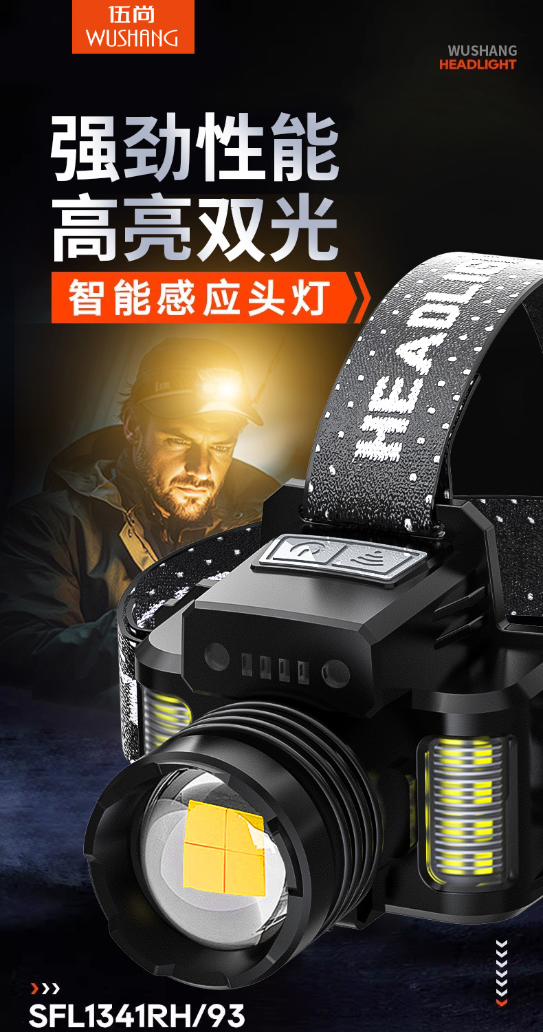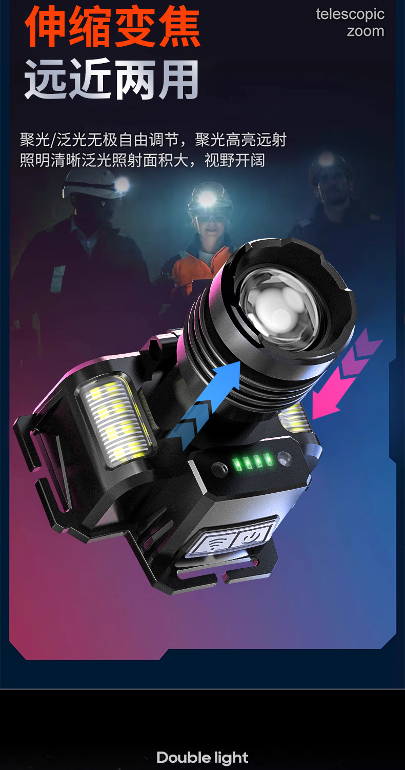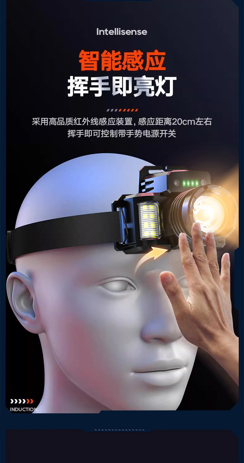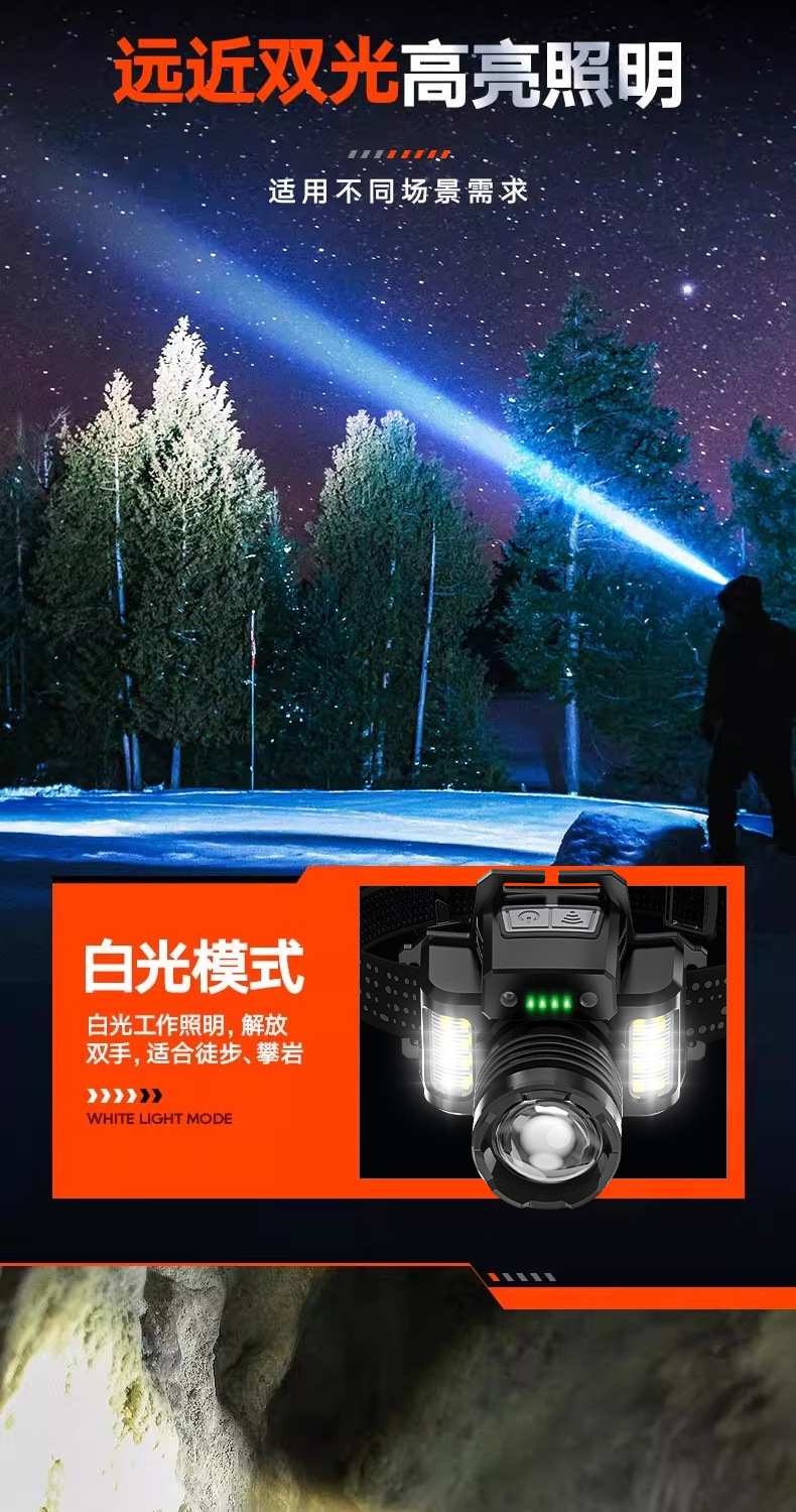 大客強光頭燈超亮充電戶外遠射釣魚多功能感應頭戴式戶外頭燈