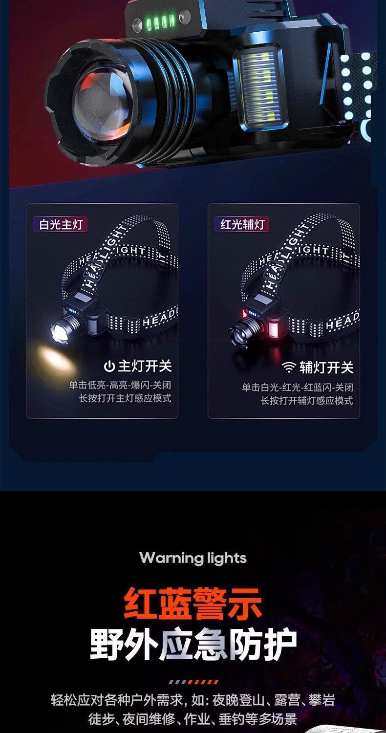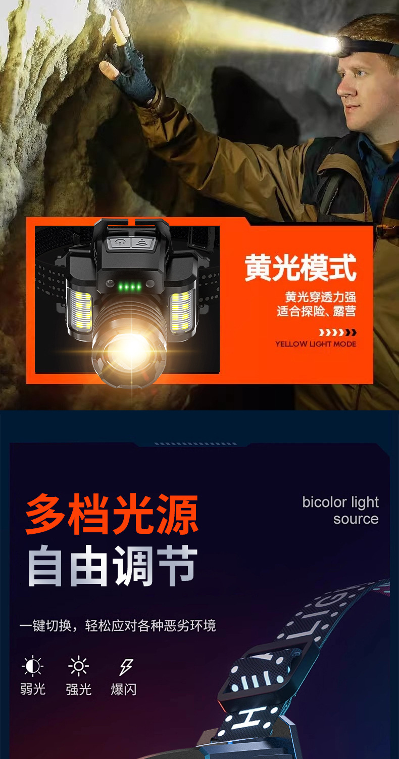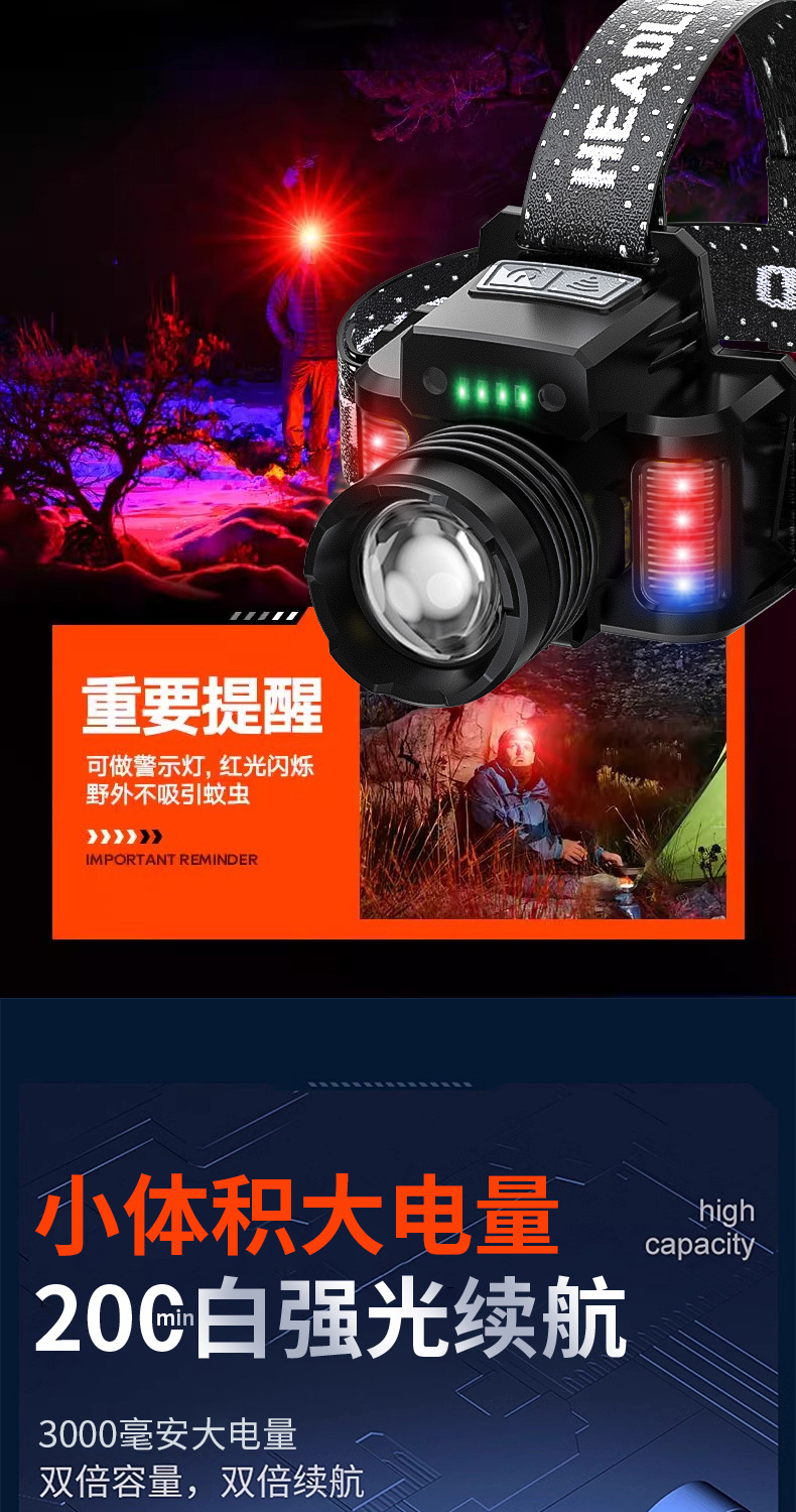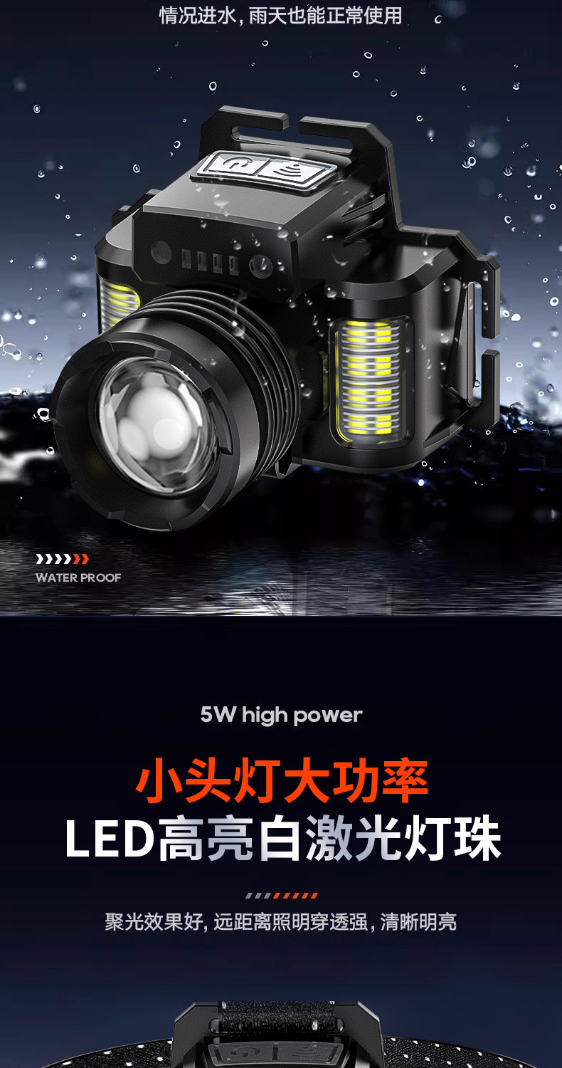 大客強光頭燈超亮充電戶外遠射釣魚多功能感應頭戴式戶外頭燈