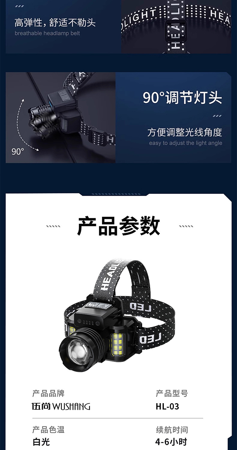 | 顔色 | HL03黑色黃光伸縮頭燈 |