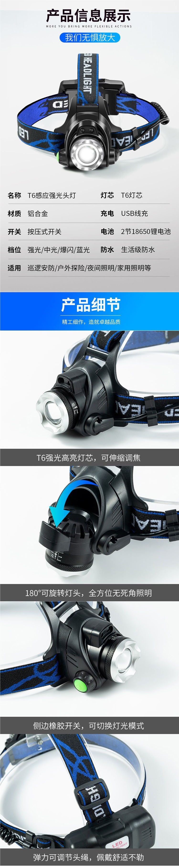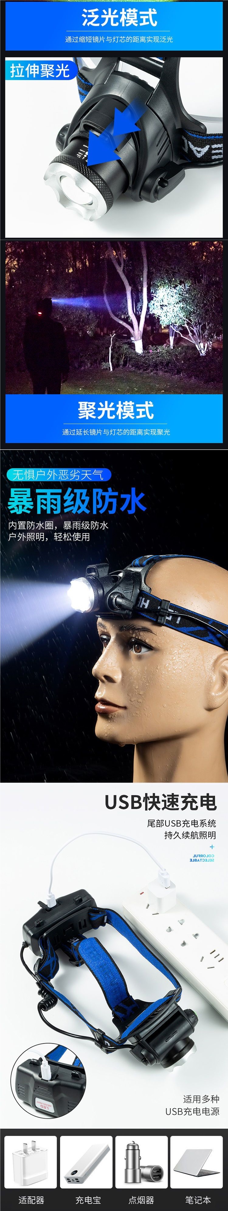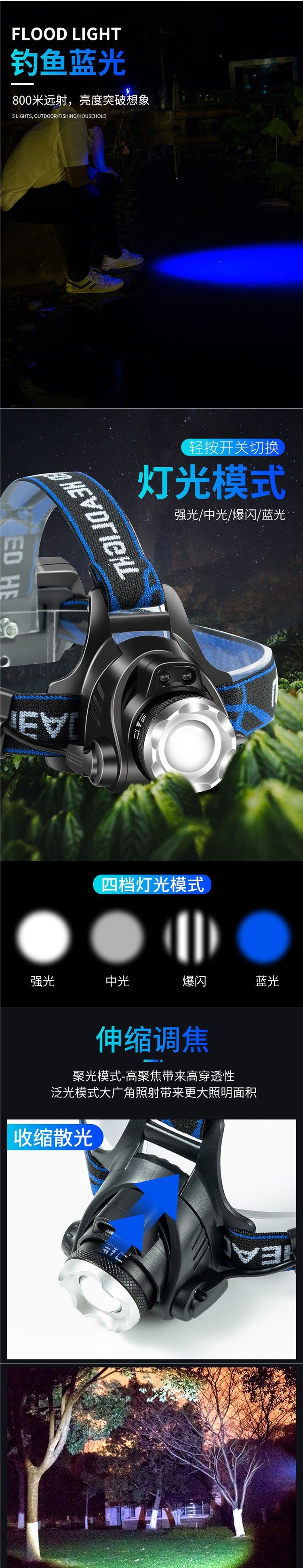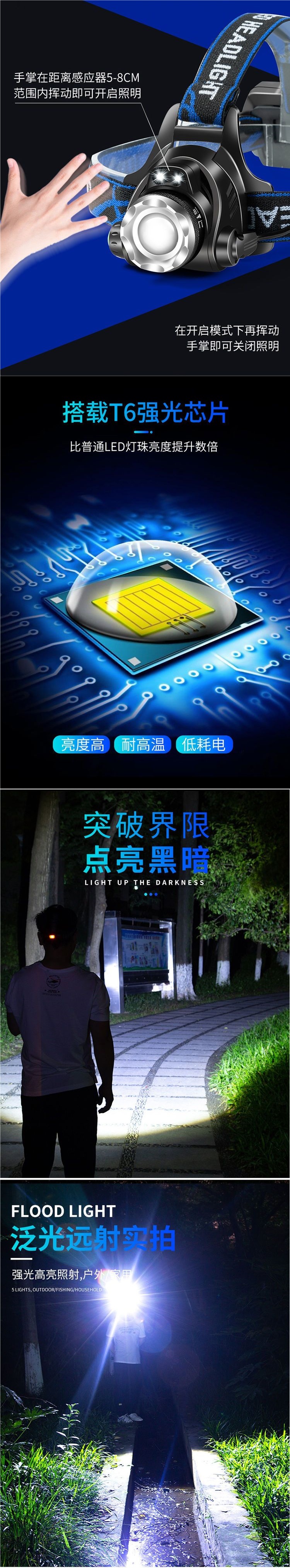 led頭燈強光可充電防水超亮遠射手電筒頭戴式感應釣魚燈夜釣礦燈