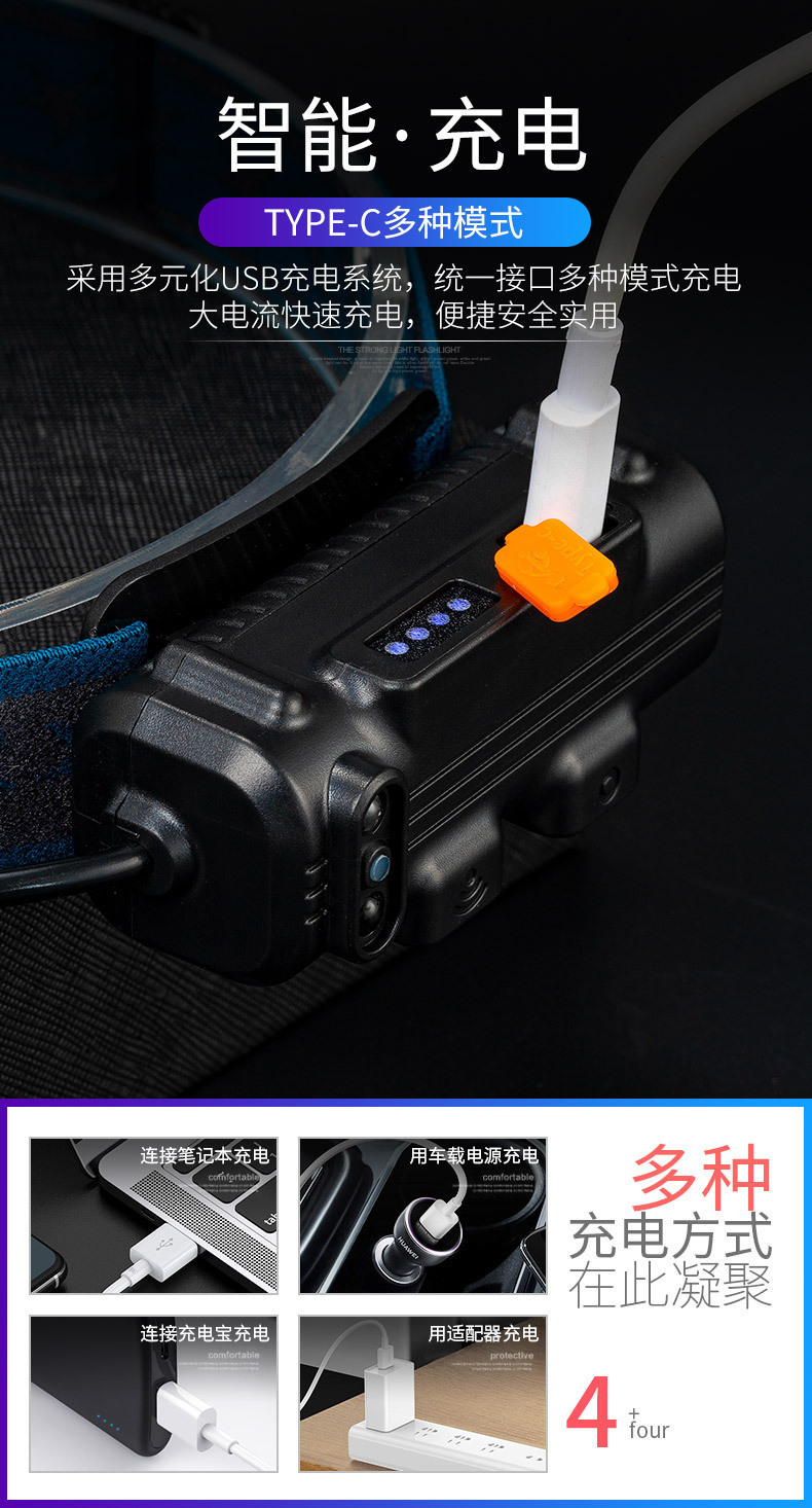 感應頭燈夜釣長續航手電筒釣魚LED燈戶外頭戴工作強光照明燈