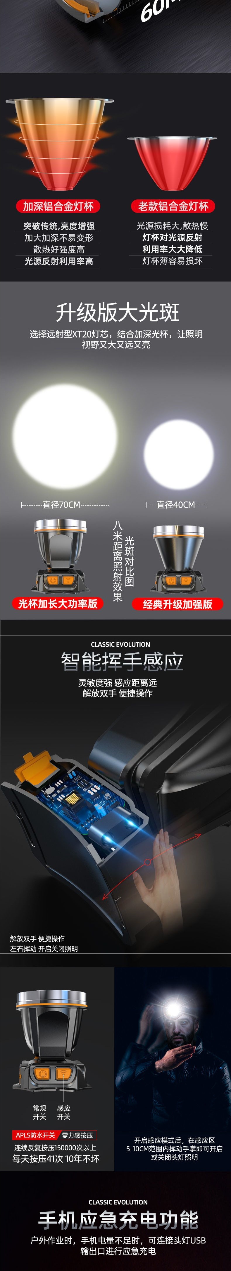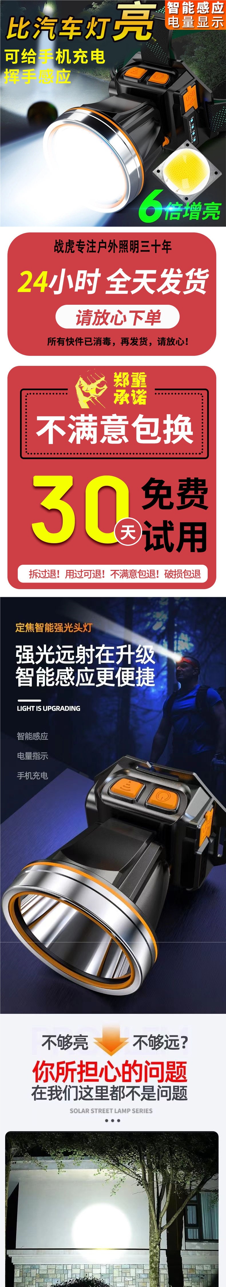 超亮led頭燈強光可充電野外夜釣魚礦燈感應頭戴式戶外手電筒