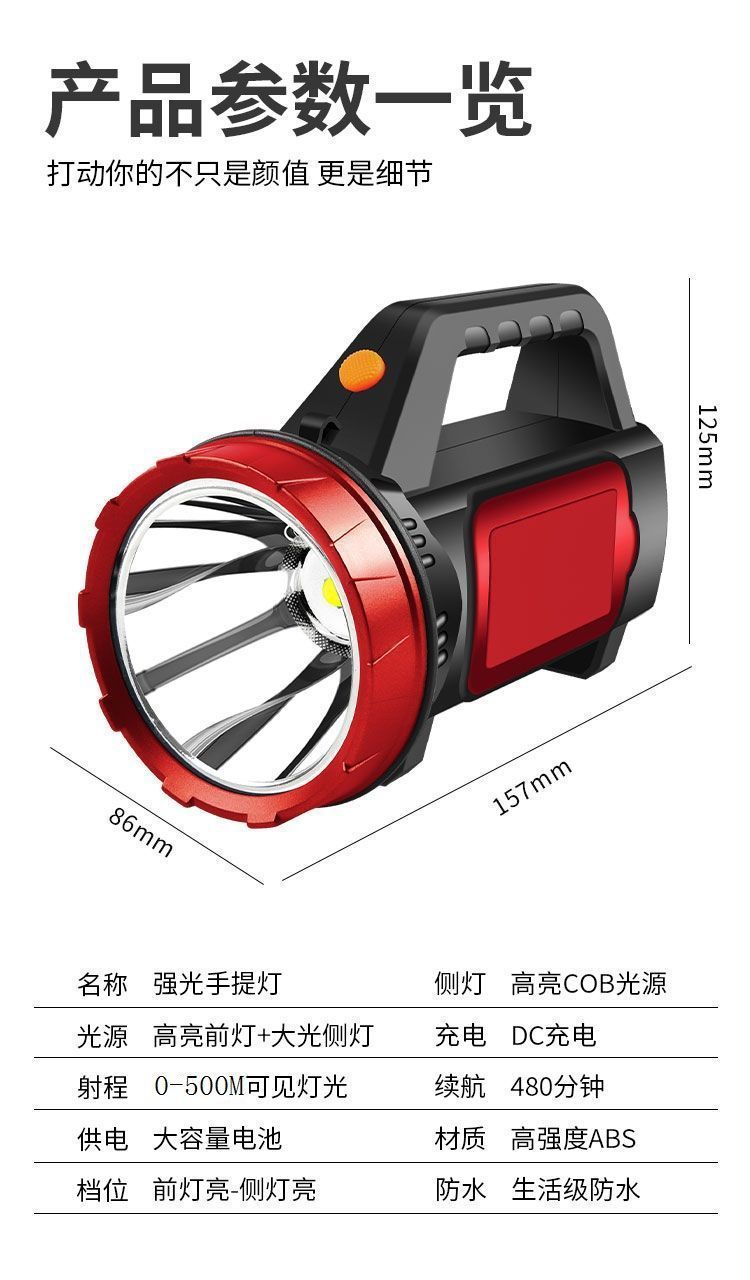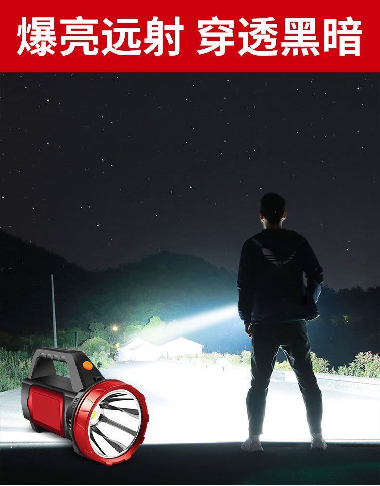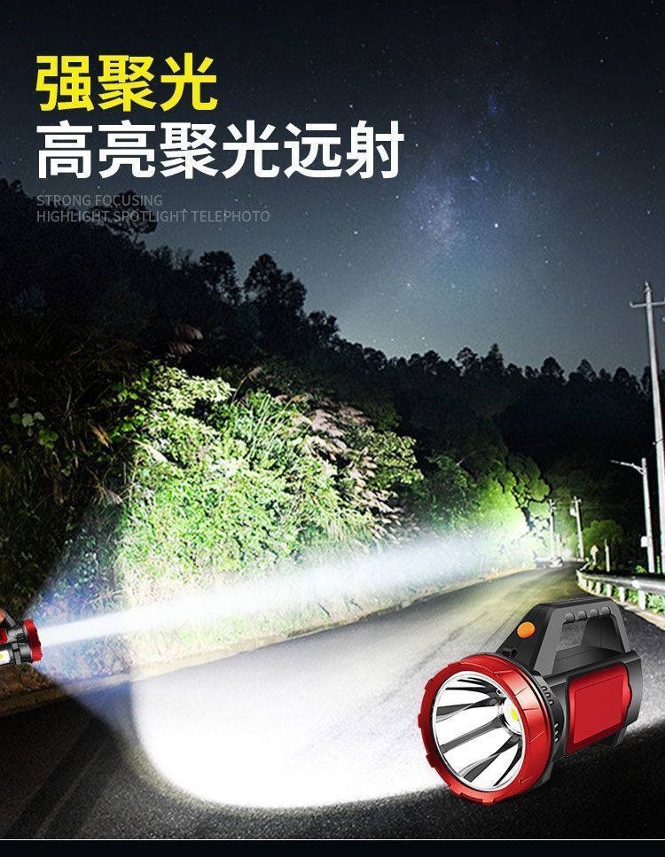戶外超亮遠射手提充電燈釣魚耐用應急礦燈長續航可攜式強光手電筒