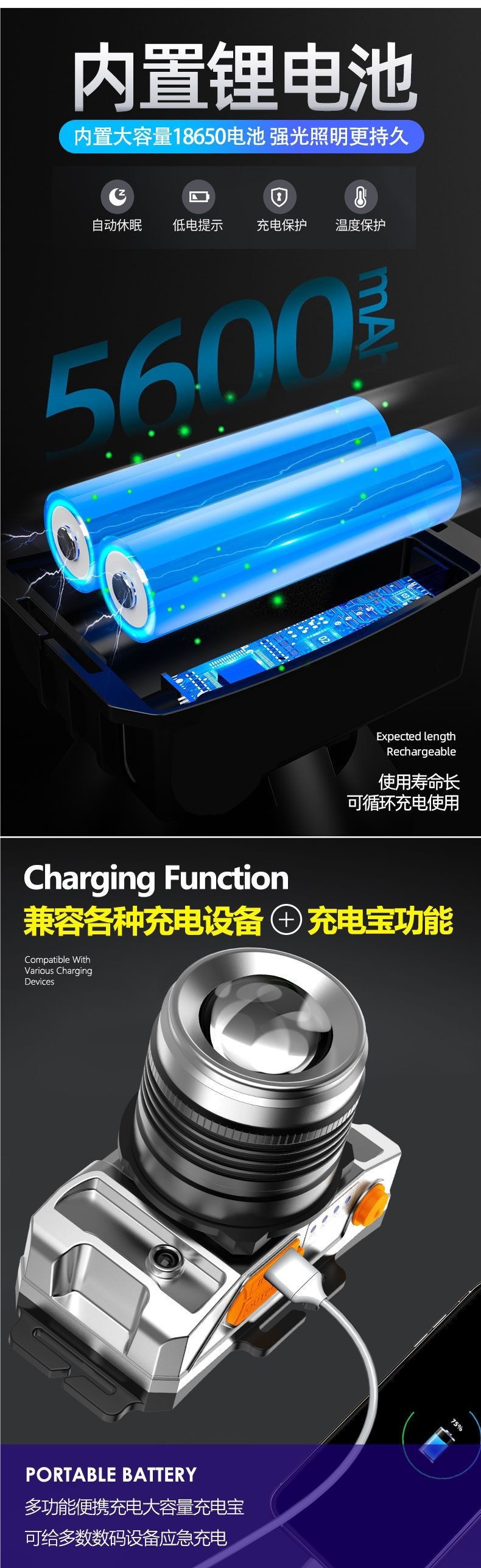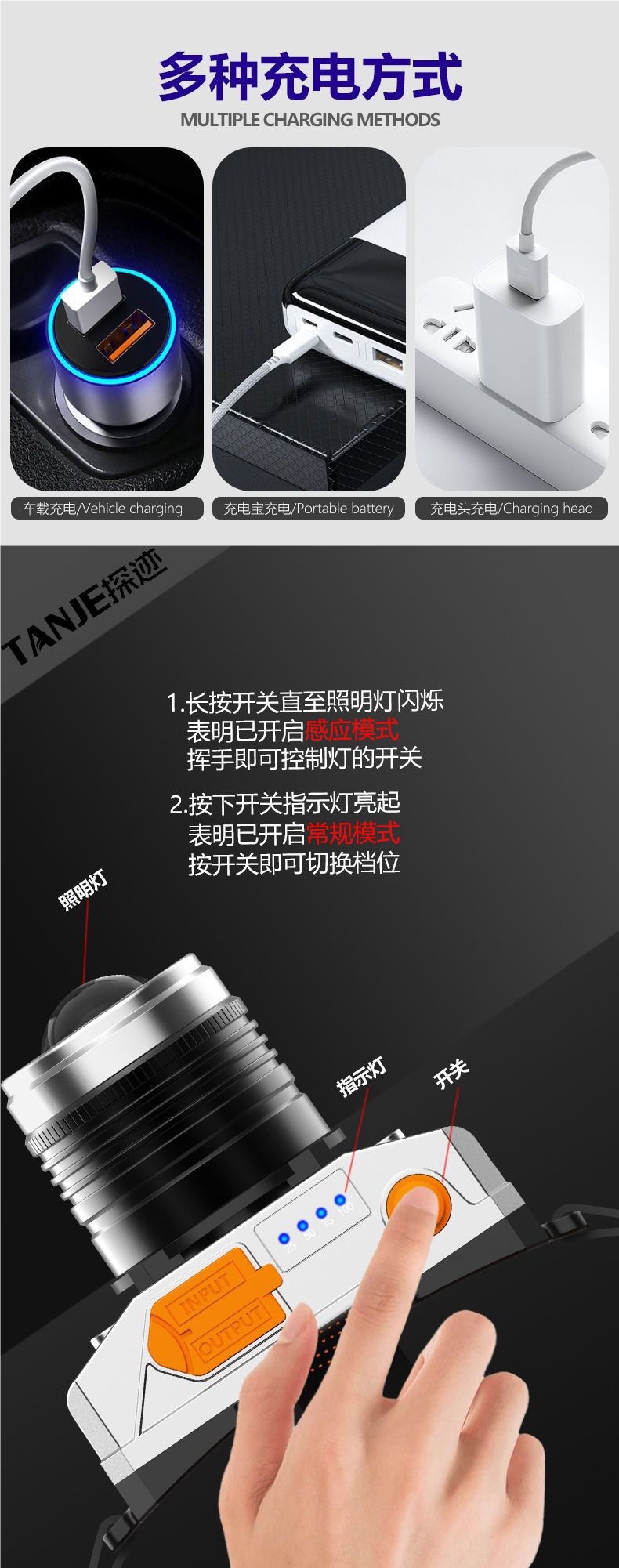 | 顔色 | T18【電量顯示+揮手感應+行動電源】-爆亮變焦99000K標配充電款60時---限時狂歡 |