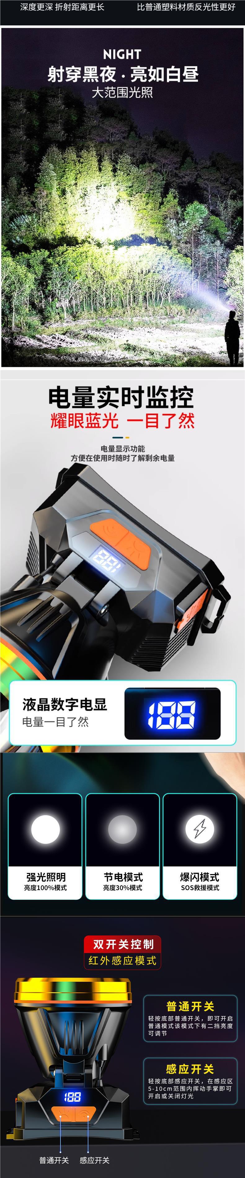 | 顔色 | 雙鋰電99800W黃光【600小時】數顯+帶感應+帶輸出【更大光斑】 配用頭繩+數據線 |