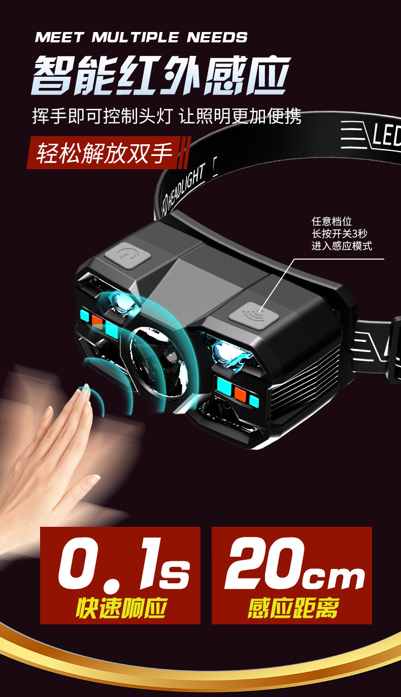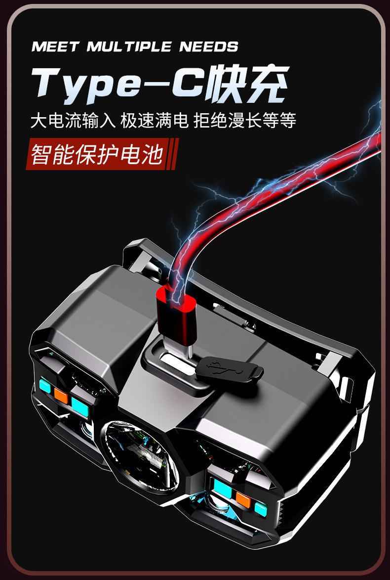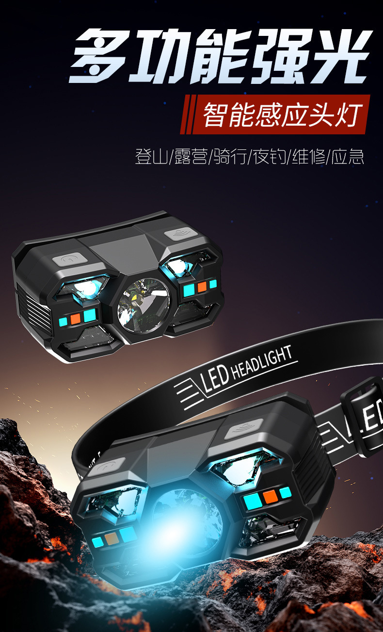 感應頭燈釣魚遠射專用LED超輕頭戴式超長續航強光充電超亮戶外廠