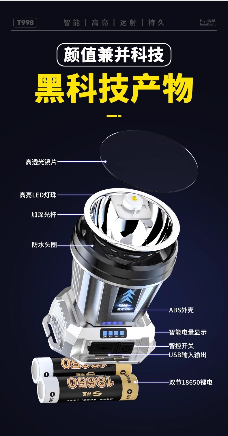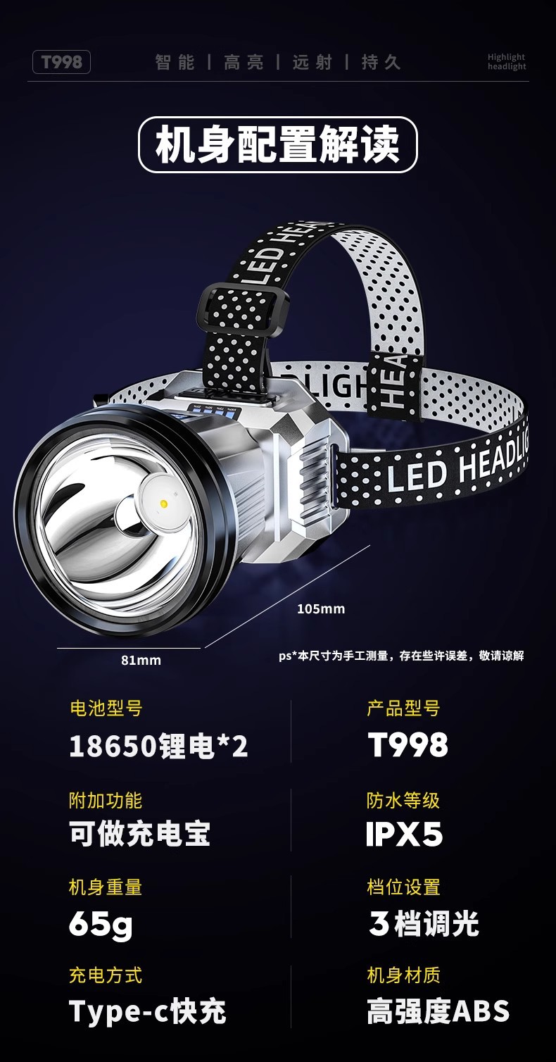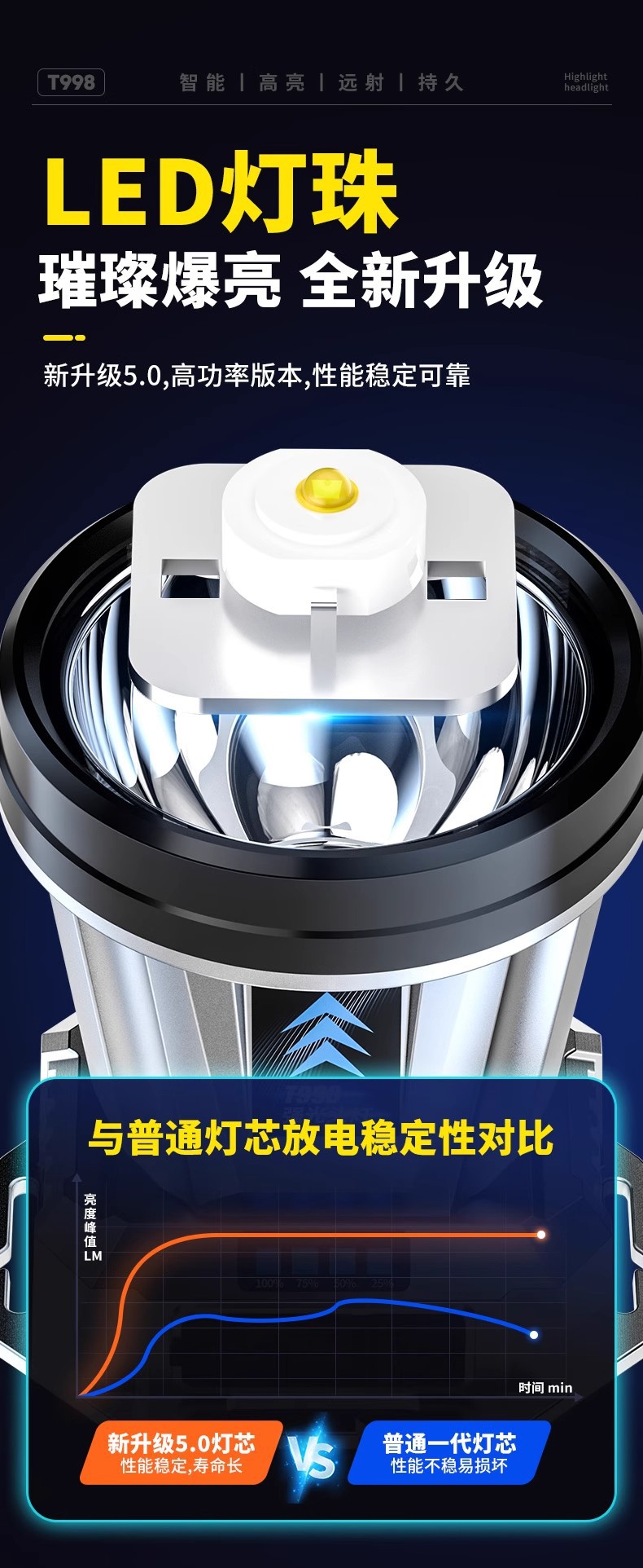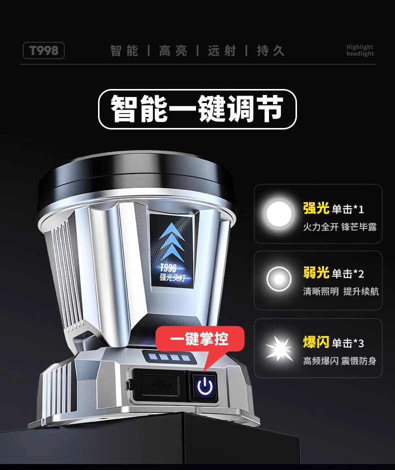 ♔公牛適用頭燈2025新款強光超亮充電頭戴式照明燈戶外登山釣魚工