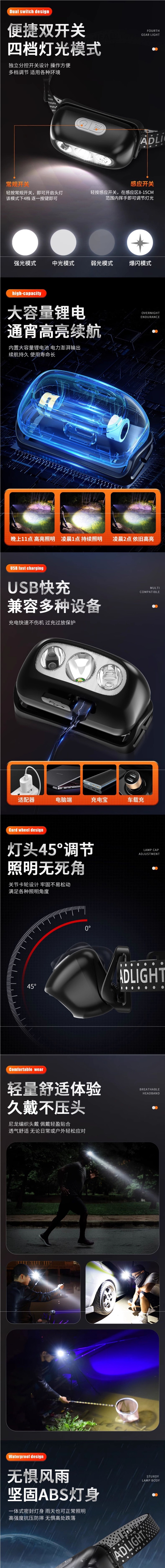 頭燈強光充電超亮頭戴式夜釣魚照明戶外超長續航感應小手電筒