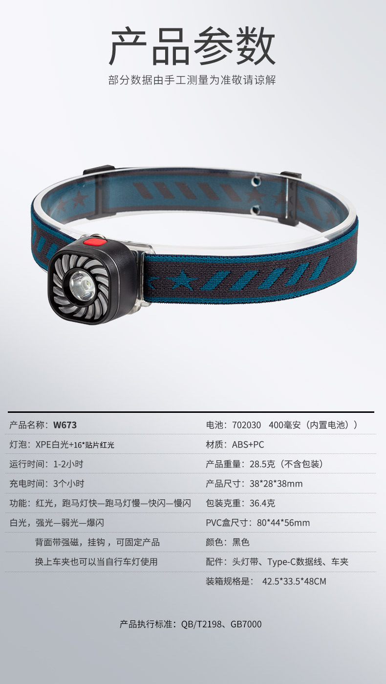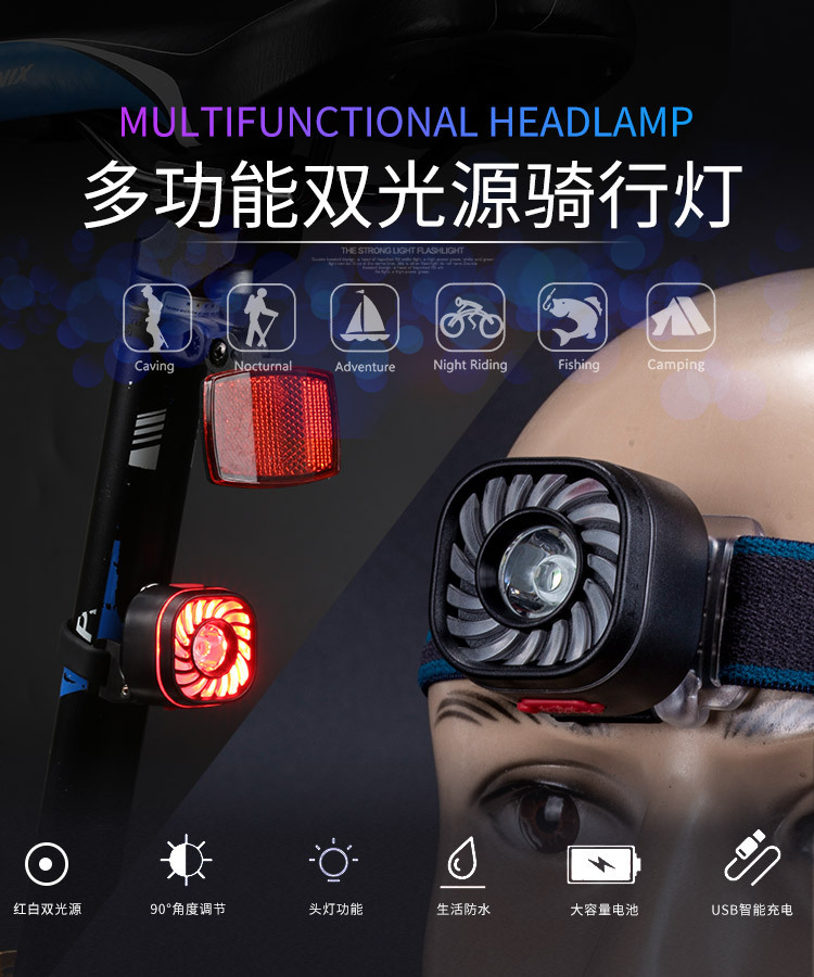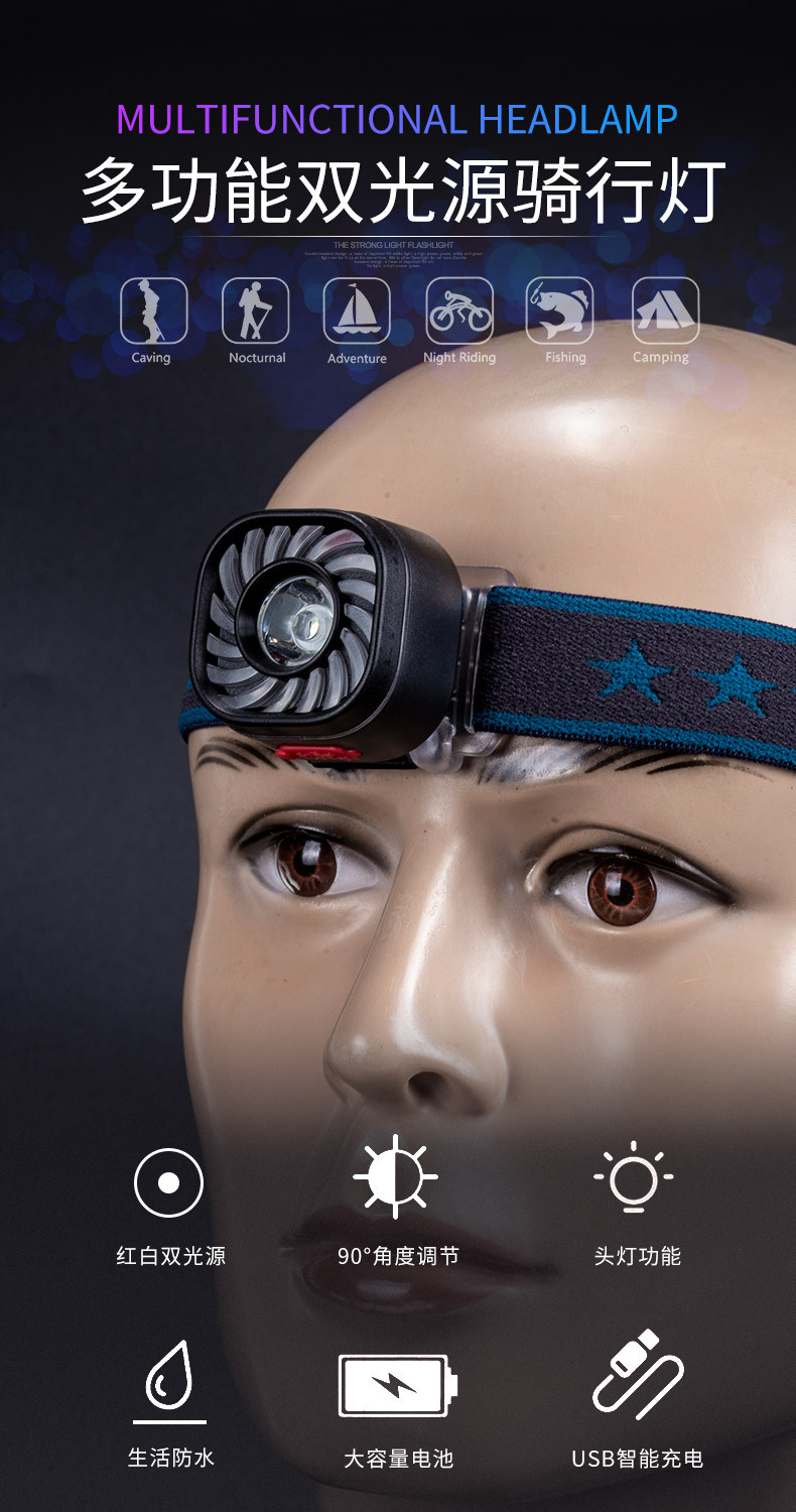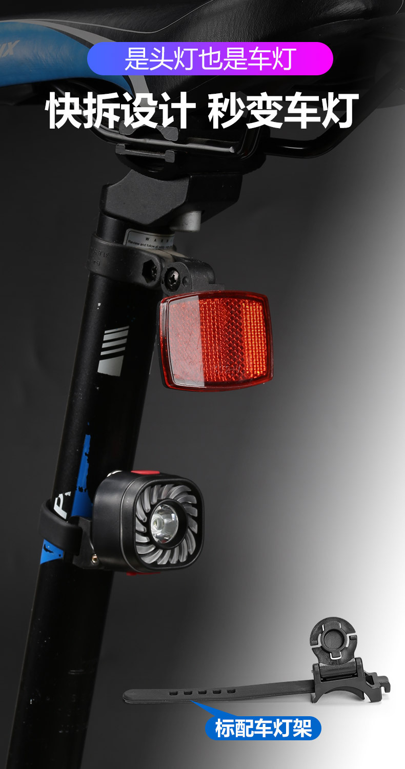 輕巧多功能自行車頭戴兩用燈type-c充電自行車燈戶外頭燈