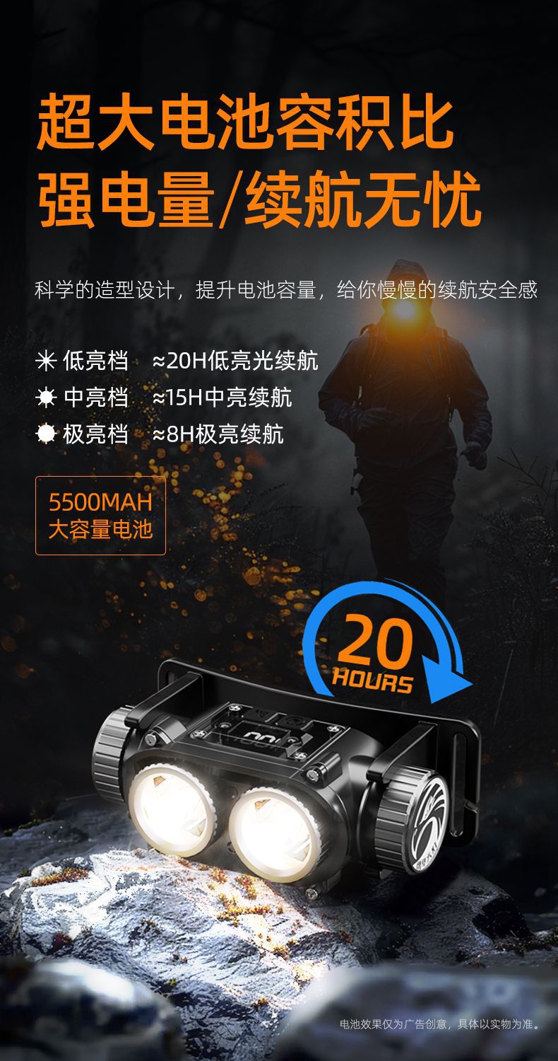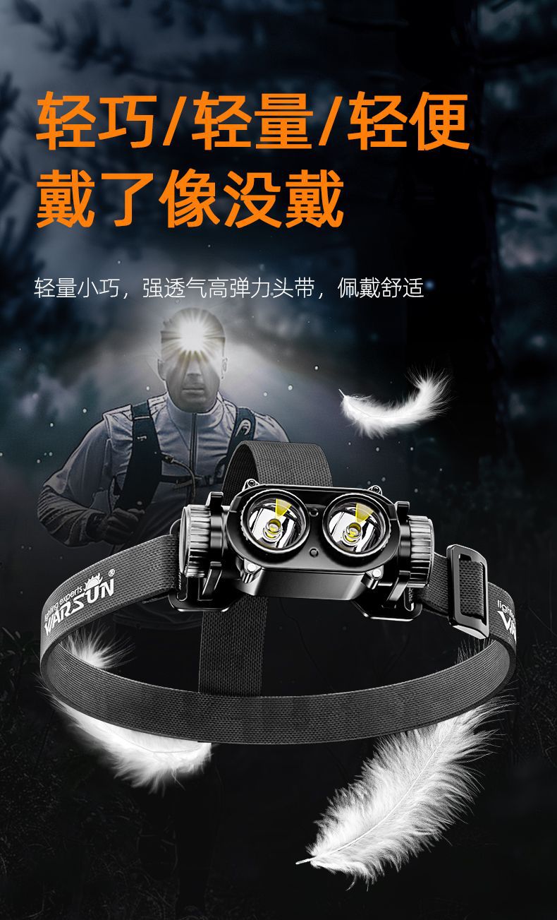 頭戴式強光可充電頭燈超亮釣魚戶外專用手電筒超長續航感應戶外燈