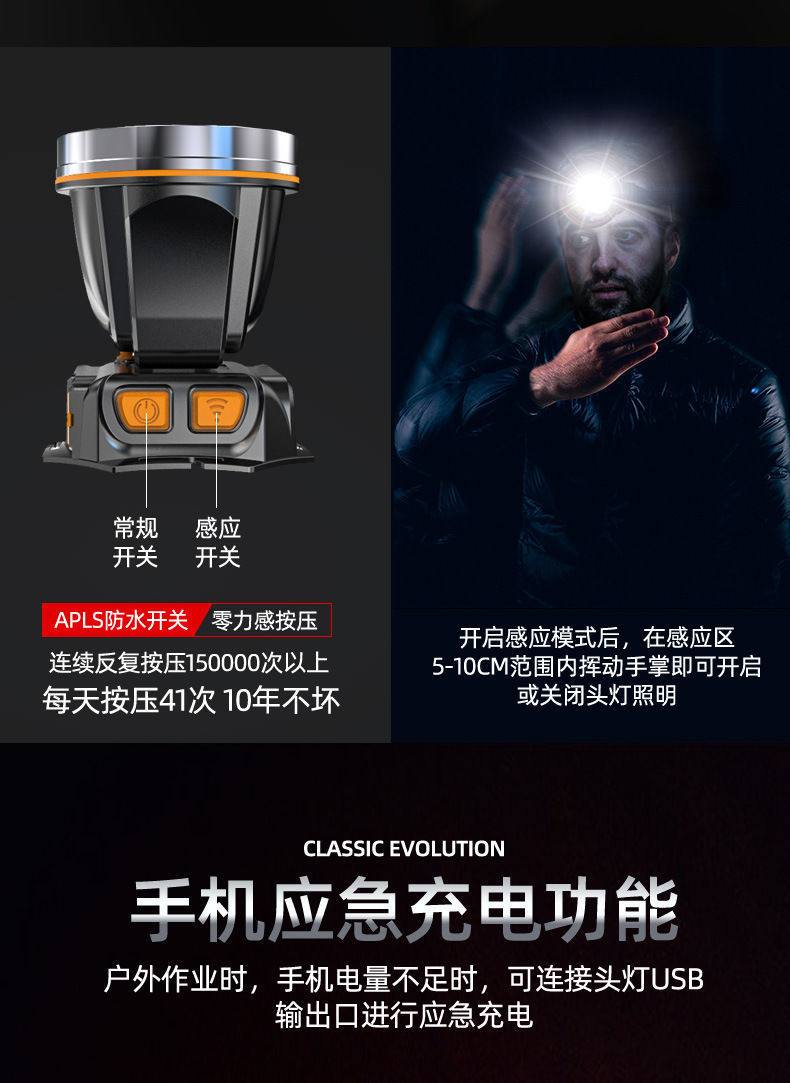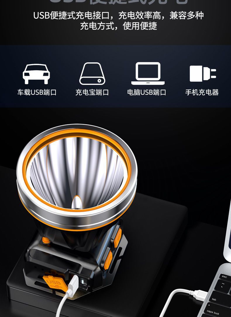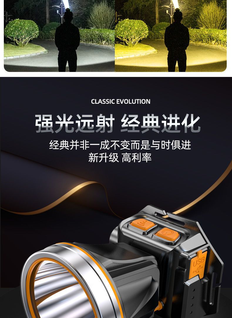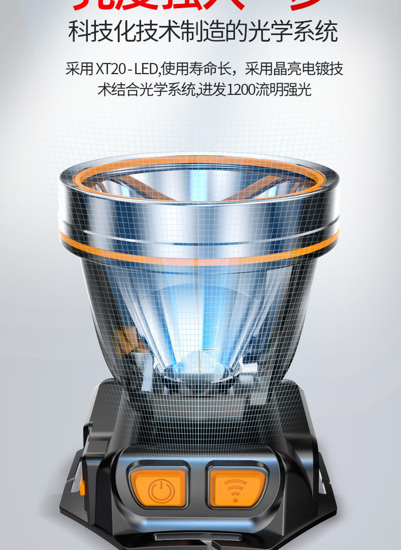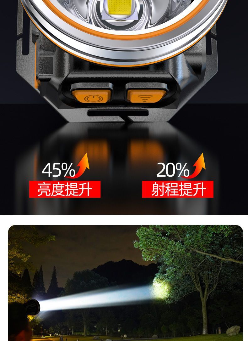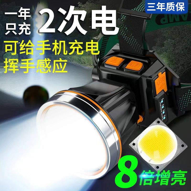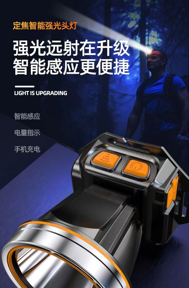超亮led頭燈強光可充電野外超亮夜釣魚礦燈感應頭戴式戶外手電筒