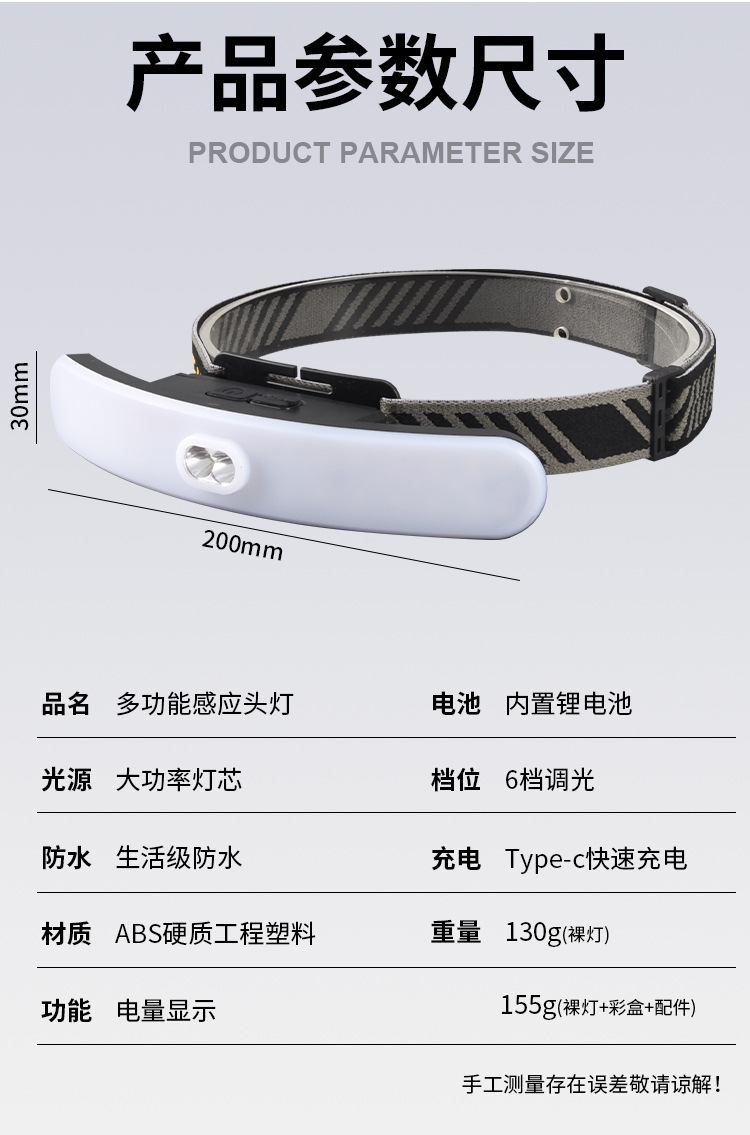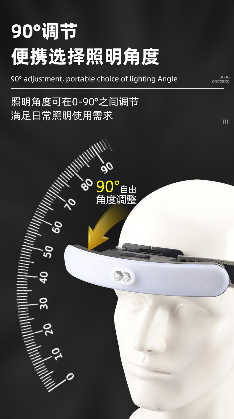 新款COB頭燈 USB充電戶外騎行泛光頭燈 紅光警示強光跑步頭燈