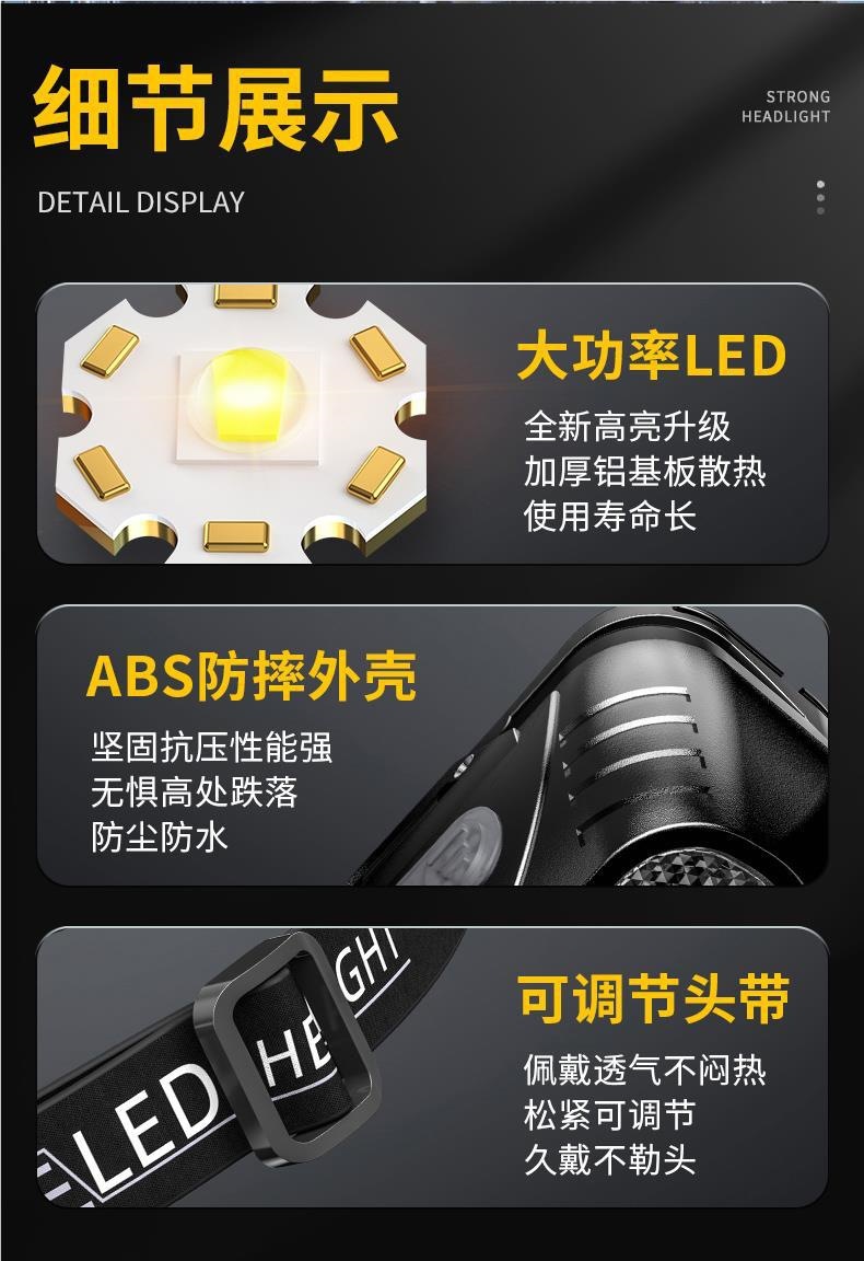 夜釣魚頭燈強光充電超亮頭戴式超長續航手電筒礦燈輕小號
