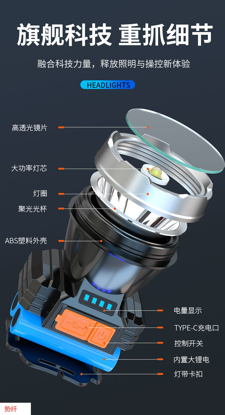 LED頭燈強光充電夜釣魚戶外趕海手電筒超亮遠射頭戴式黃光礦燈廠