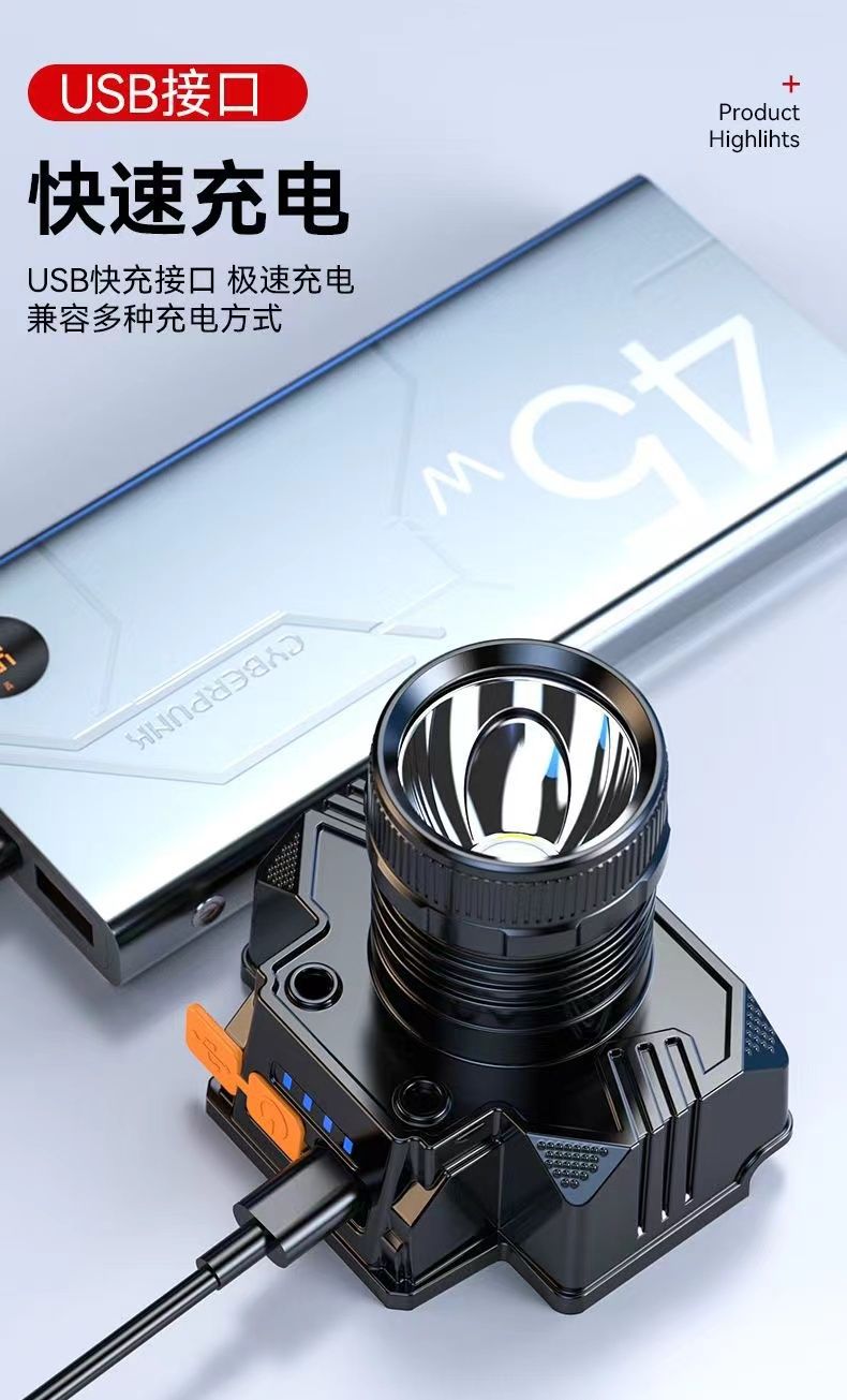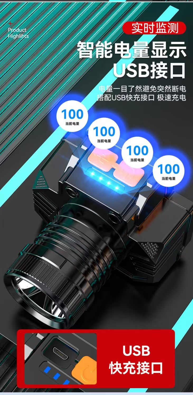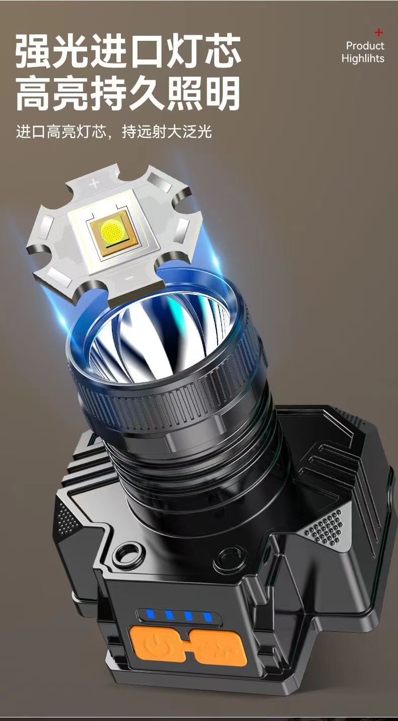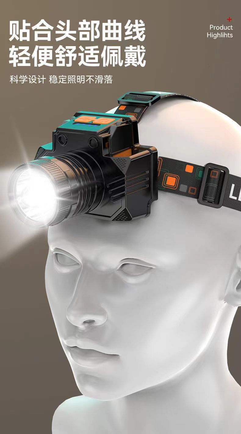 EhdLED頭燈強光遠射可充電戶外防水超亮釣魚頭戴式礦燈手電筒