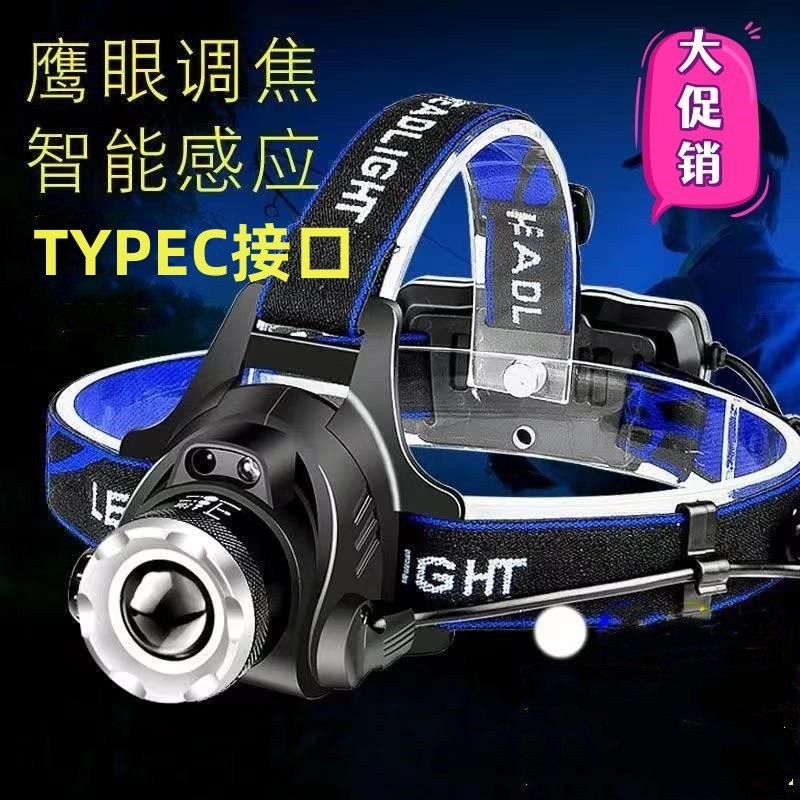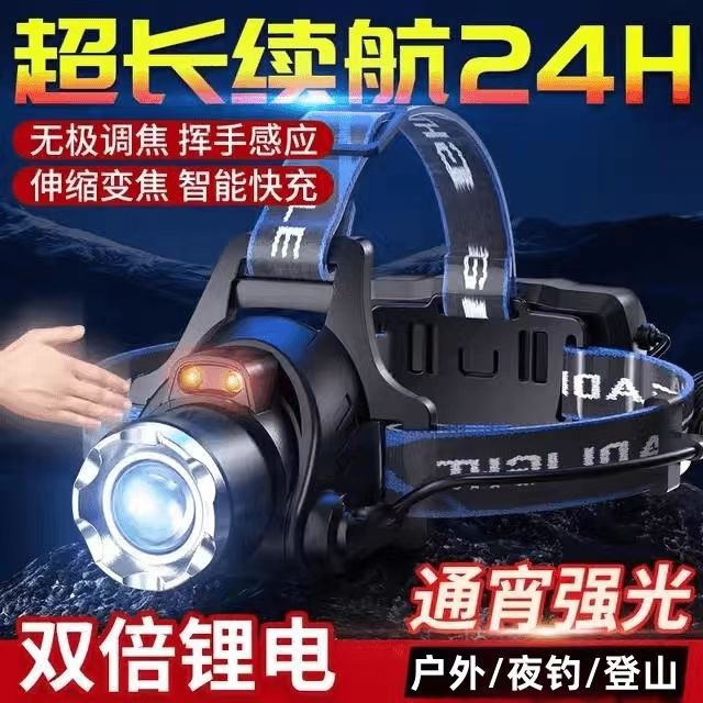 LED頭燈強光充電式感應變焦超亮遠射頭戴式手電筒夜釣魚燈礦燈