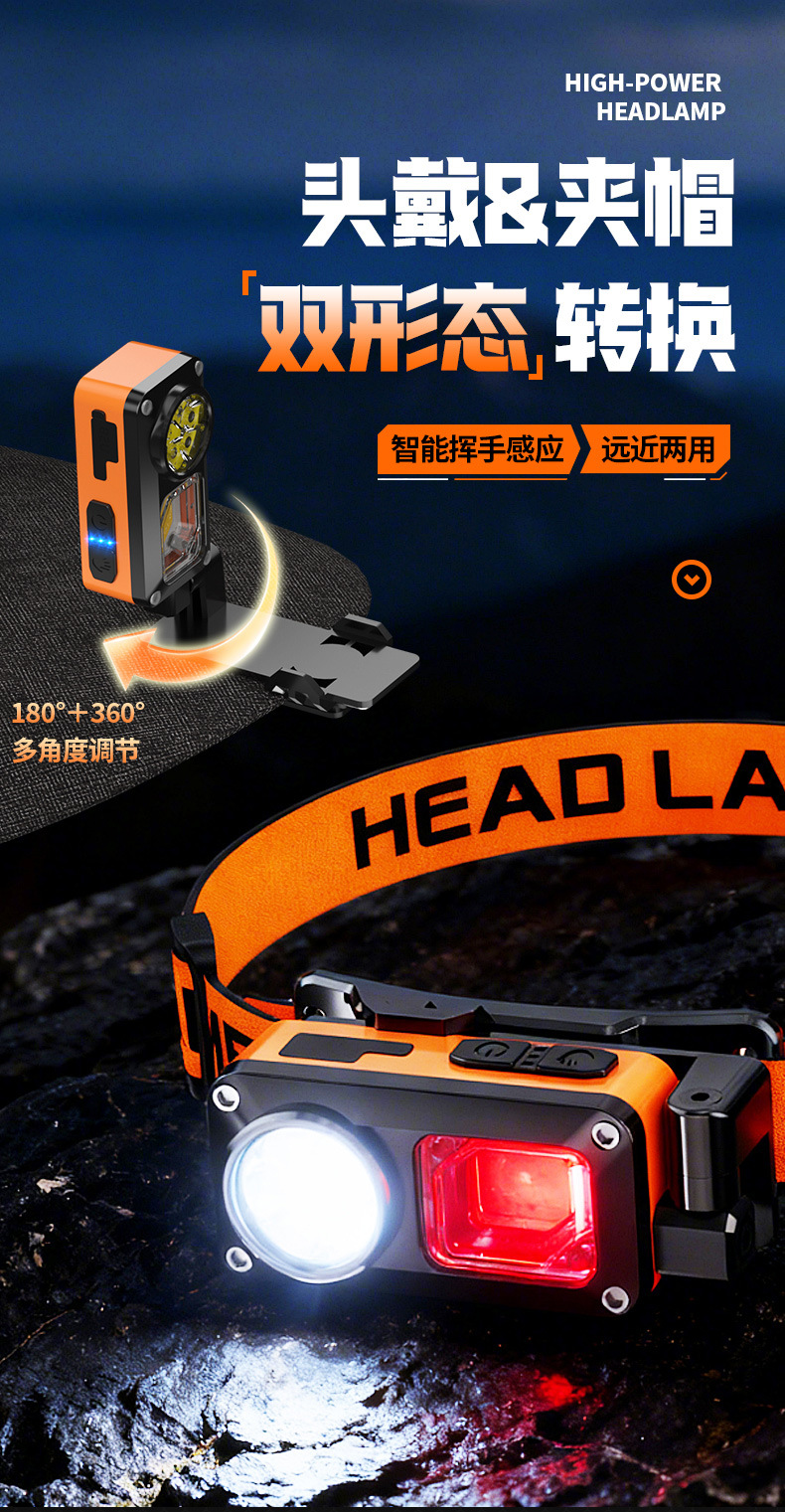 戶外強光長續航頭燈頭戴式智能感應照明燈夜釣專用充電式led燈