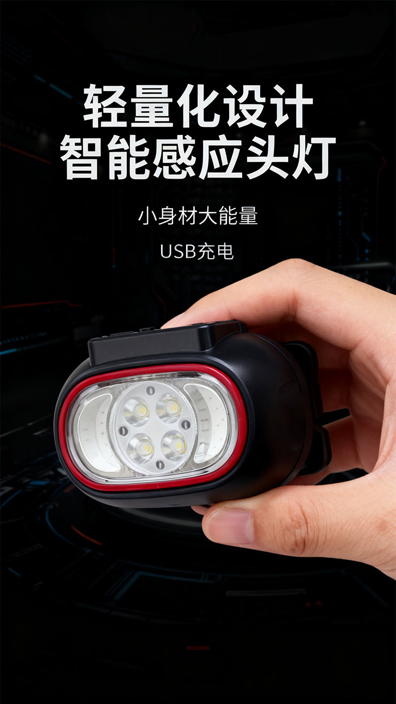 超亮戶外超長續航頭戴式照明手感應頭燈強光夜釣釣魚充電頭燈