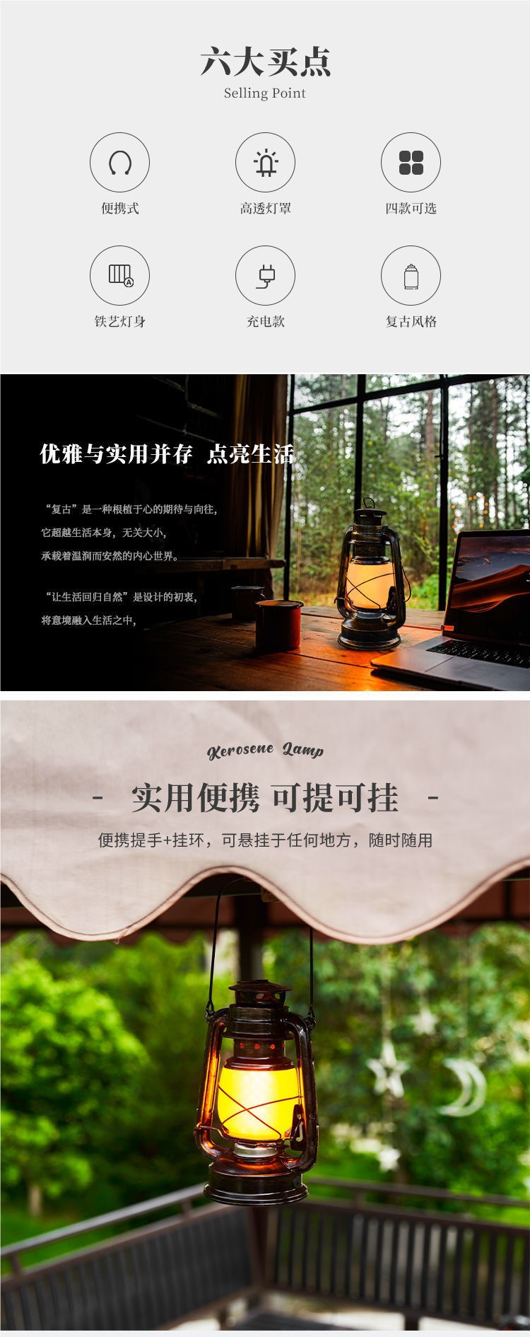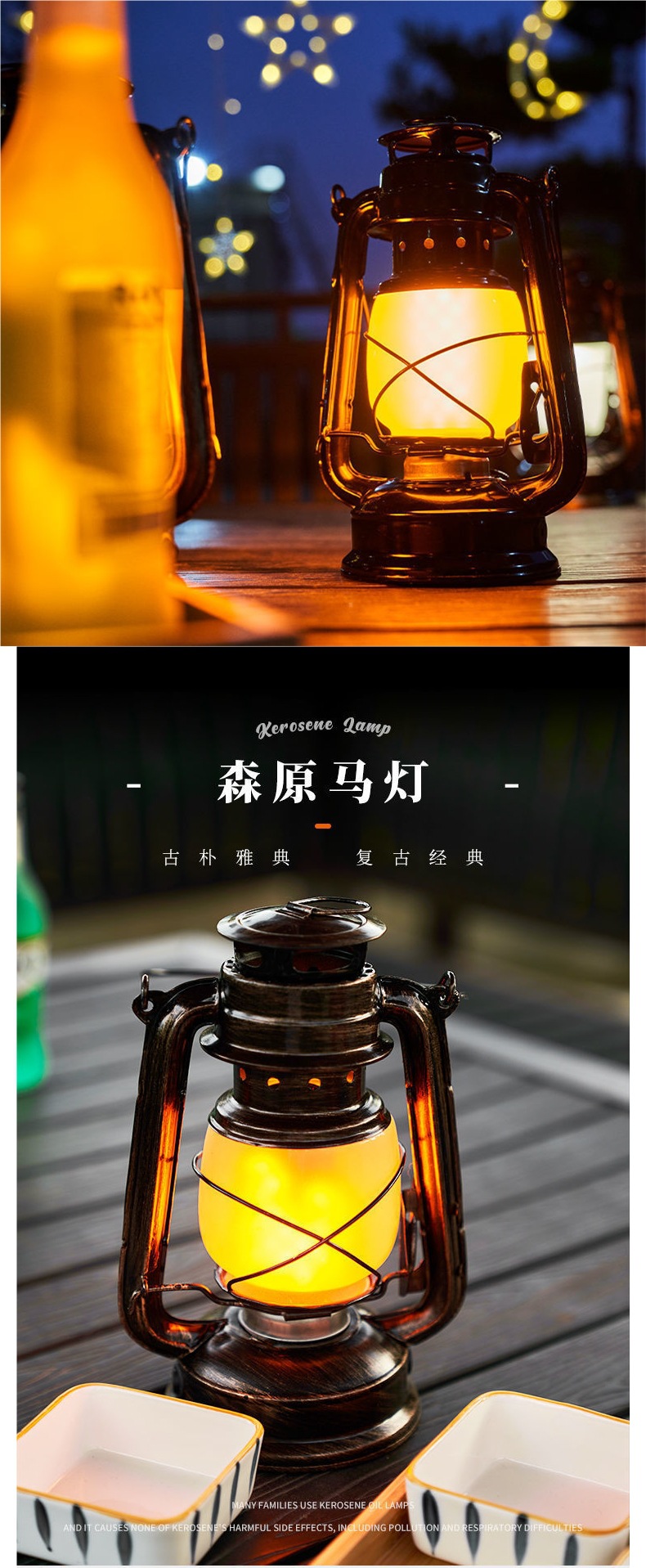 露營燈手提復古馬燈充電式煤油燈LED營地燈應急燈帳篷燈鐵藝擺件