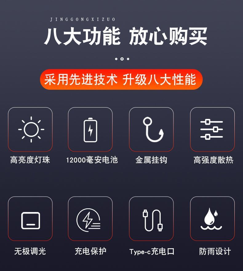 | 顔色 | 雙色光【白光/黃光 可切換】-2000W12000安培-續航75H |